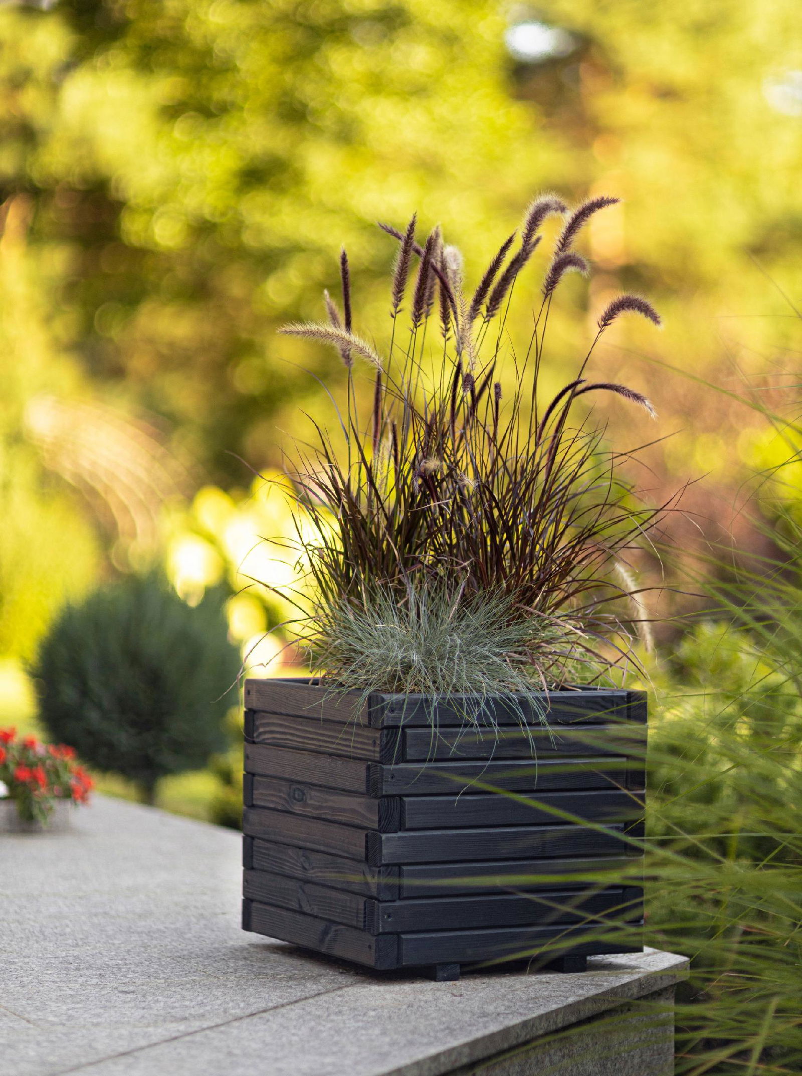 Solidność i styl w Twoim ogrodzie – Donica Drewniana Sosnowa Antracytowa Graphia 40x40x40cm Grubość 3.5cm