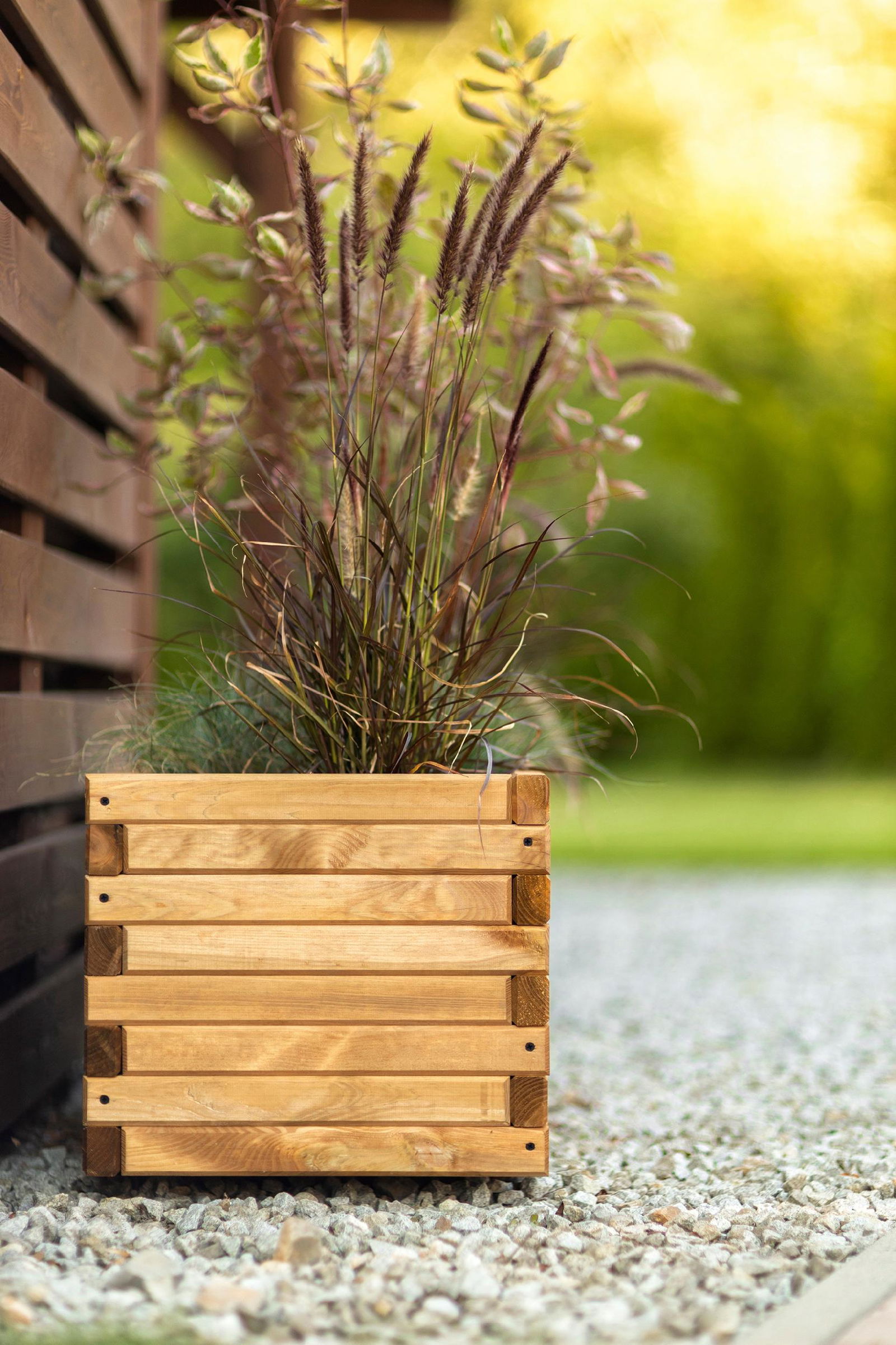 Solidność i styl w Twoim ogrodzie – Donica Drewniana Sosnowa Brązowa Terra 100x40x40cm Grubość 3.5cm