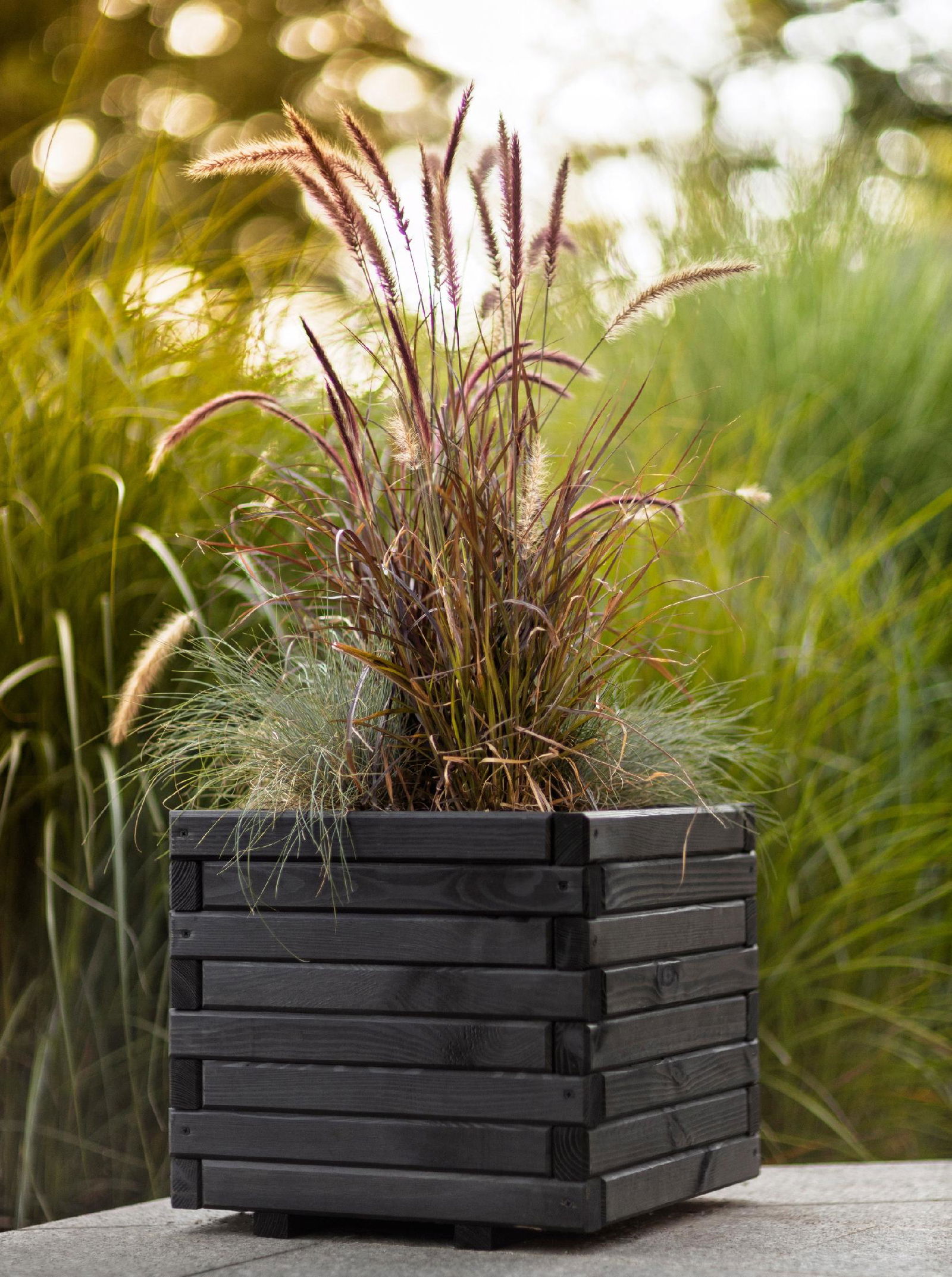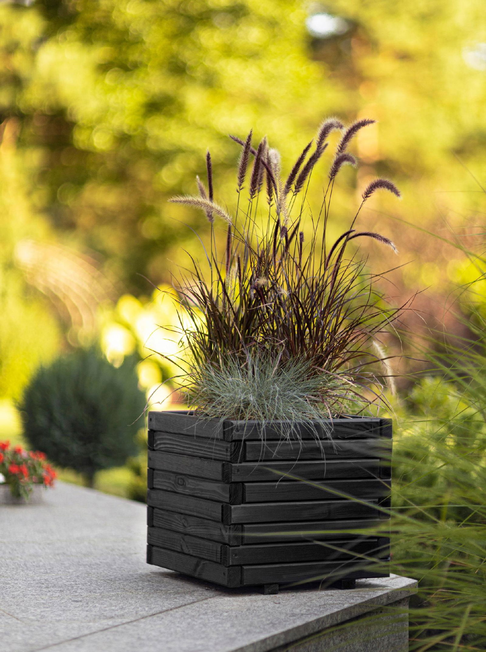 Solidność i styl w Twoim ogrodzie – Donica Drewniana Sosnowa Czarna Flora 40x40x40cm Grubość 3.5cm