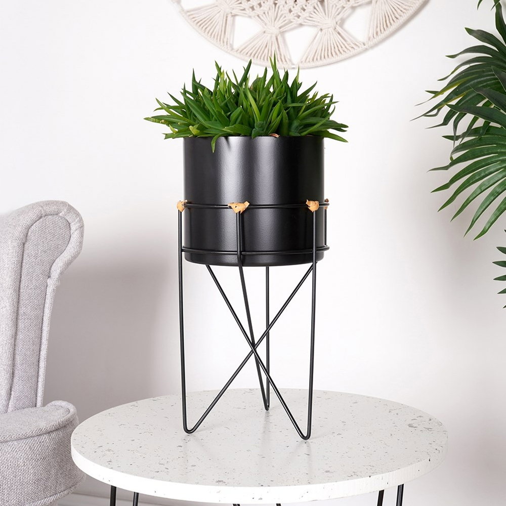 Doniczka Kwietnik Osłonka na Stojaku Metalowa Czarna na Rośliny Kwiatki