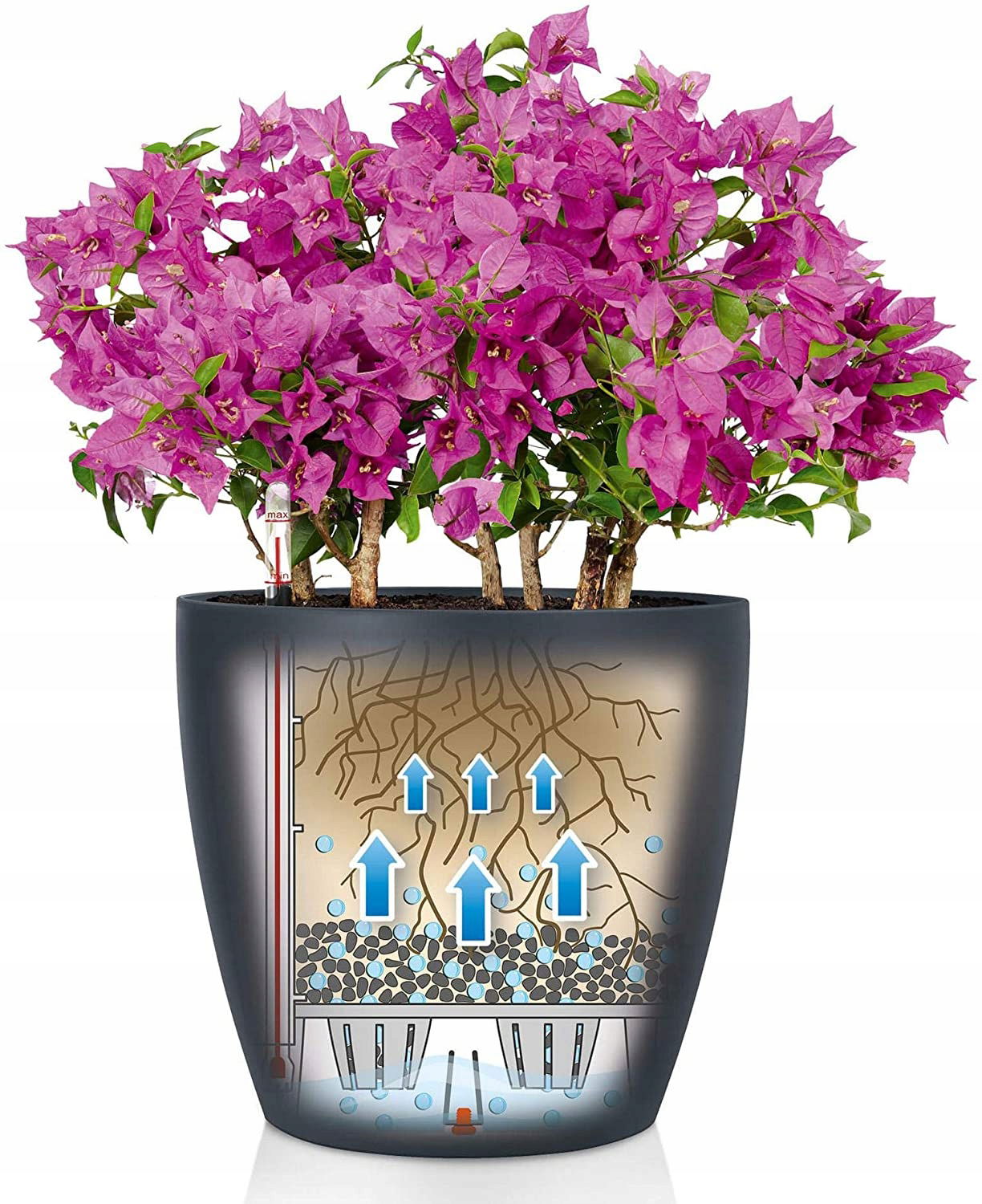 System nawadniający zapewni odpowiednie nawodnienie od dołu (tak jak ma to miejsce w naturze), a specjalny substrat Lechuza PON będzie stanowić rezerwuar wody oraz składników odżywczych. Na dnie doniczki znajduję się zbiornik z wodą, a wskaźnik informuje nas kiedy należy ją uzupełnić.