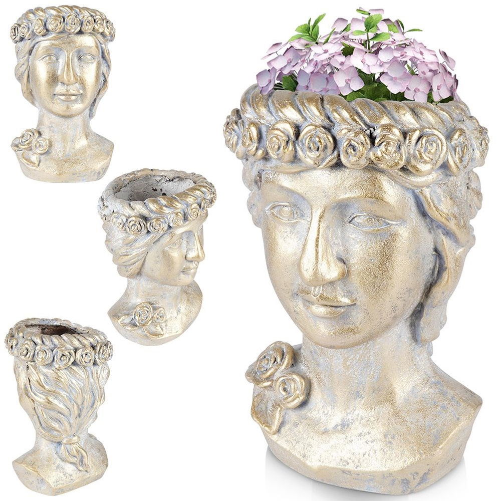 DONICZKA ZŁOTA GŁOWA OSŁONKA NA ROŚLINĘ KWIATKI ZIOŁA POSĄG DONICA