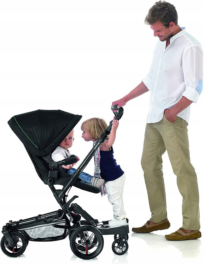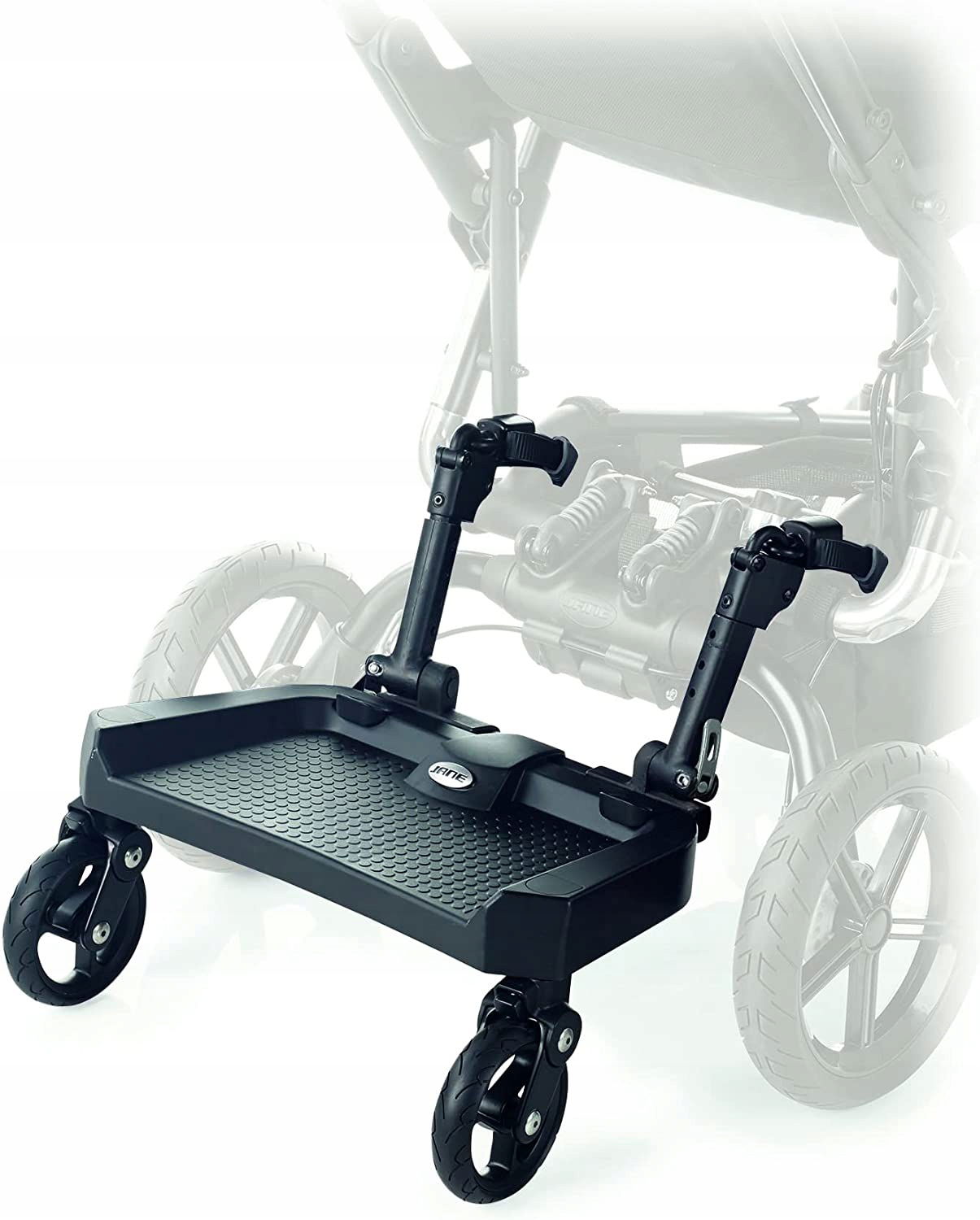 Uniwersalna deska Go Up Surfer ma dłuższą podstawę, jest antypoślizgowa i bardzo bezpiecznie mocowana, dzięki czemu można ją przymocować do podwozia. Łatwy i bezpieczny montaż. W zestawie z tasiemką do złożenia, gdy nie jest używany. Bardzo wytrzymałe, odporne na hałas, obracane o 360 stopni koła z wbudowaną amortyzacją. 100% dopasowania do każdego rozmiaru, prostokątne i olaver rury. Nadaje się dla dzieci w wieku od pół roku do 20 kg.