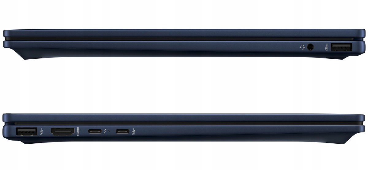 - porty i złącza: 1 port Thunderbolt 4, transfer do 40 Gb/s (zgodny z USB Type-C, obsługa DisplayPort 2.1 oraz Power Delivery 3.1, służy również jako port ładowania) | 1 port USB Type-C (do 10 Gb/s, obsługa DisplayPort 1.4a oraz Power Delivery 3.1, służy również jako port ładowania) | 2 porty USB Type-A (do 10 Gb/s) | wejście mikrofonowe / wyjście słuchawkowe stereo (combo) | cyfrowe złącze HDMI 2.1