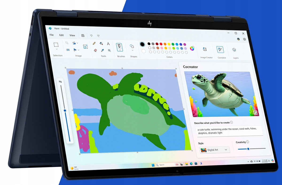 HP OmniBook X Flip Next Gen AI 14-fm0007nf CF6R8EAR#ABF NGAI, ekran dotykowy 2K OLED 14", procesor Intel Core Ultra 7 258V 8-rdzeniowy, 32GB RAM LPDDR5x-8533, szybki dysk 1TB SSD M.2 NVMe PCIe Gen4, grafika Intel Arc 140V Graphics, system Windows 11 Home 64 bit, rysik HP Active Pen w zestawie, następca serii Envy 14 x360 i Spectre 14 x360