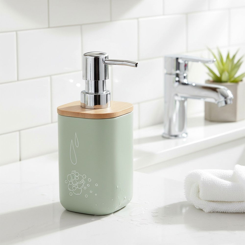 Dozownik Łazienkowy Kuchenny na Mydło w Płynie Żelu Pojemnik Zielony Bambus