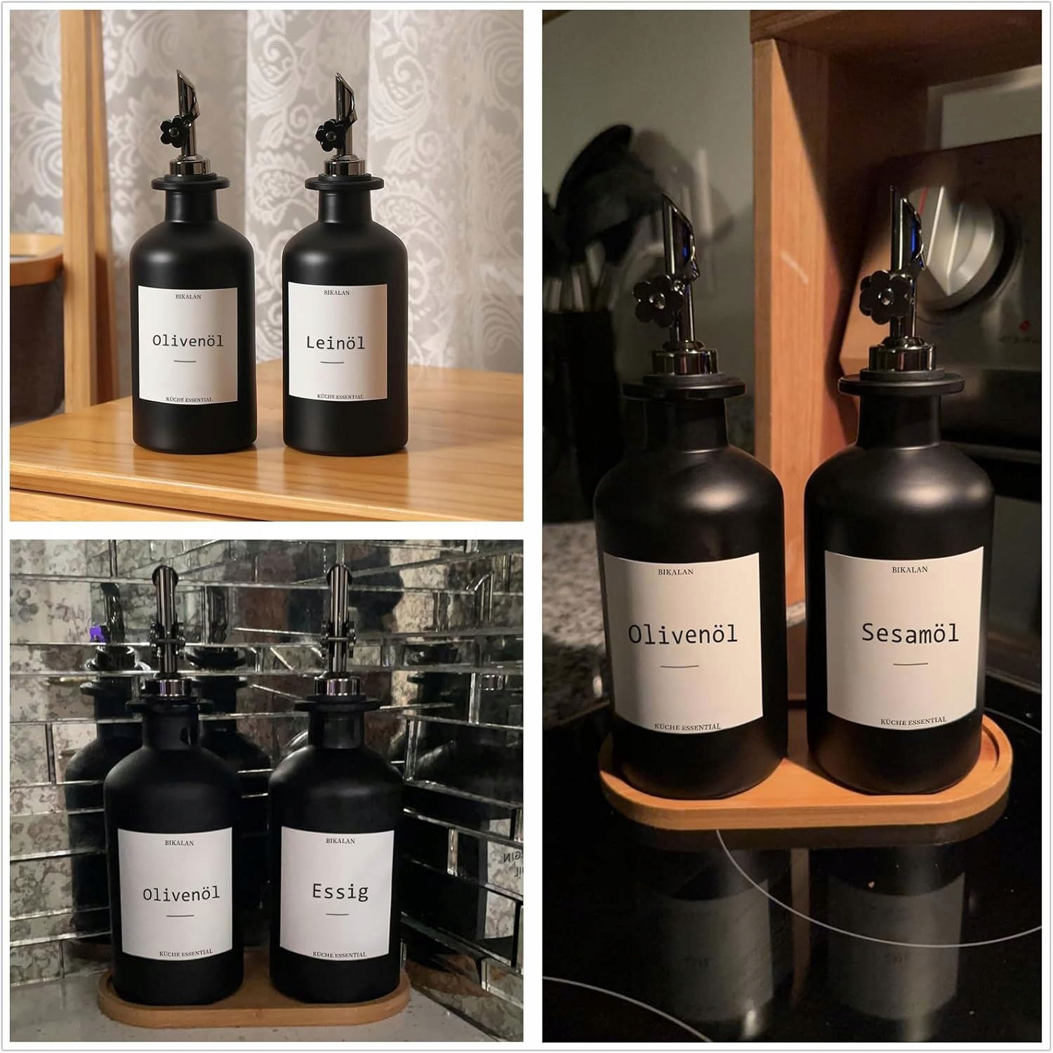 - Nowoczesna kuchnia i łazienka - butelka dozująca olej do gotowania inspirowana minimalizmem. Ten zestaw kuchenny zawiera dwie wysokiej jakości szklane butelki o pojemności 17 uncji (500 ml), 2 złote nalewaki, lejek, 22 naklejki.