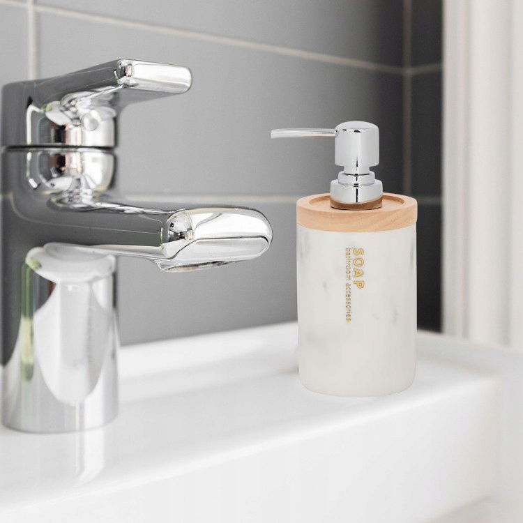DOZOWNIK NA MYDŁO A'LA MARMUR 16,5cm POJEMNOŚĆ 350 ML GÓRA Z DREWNA CZARNY