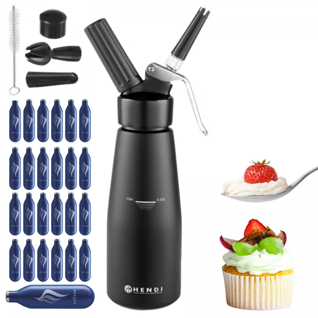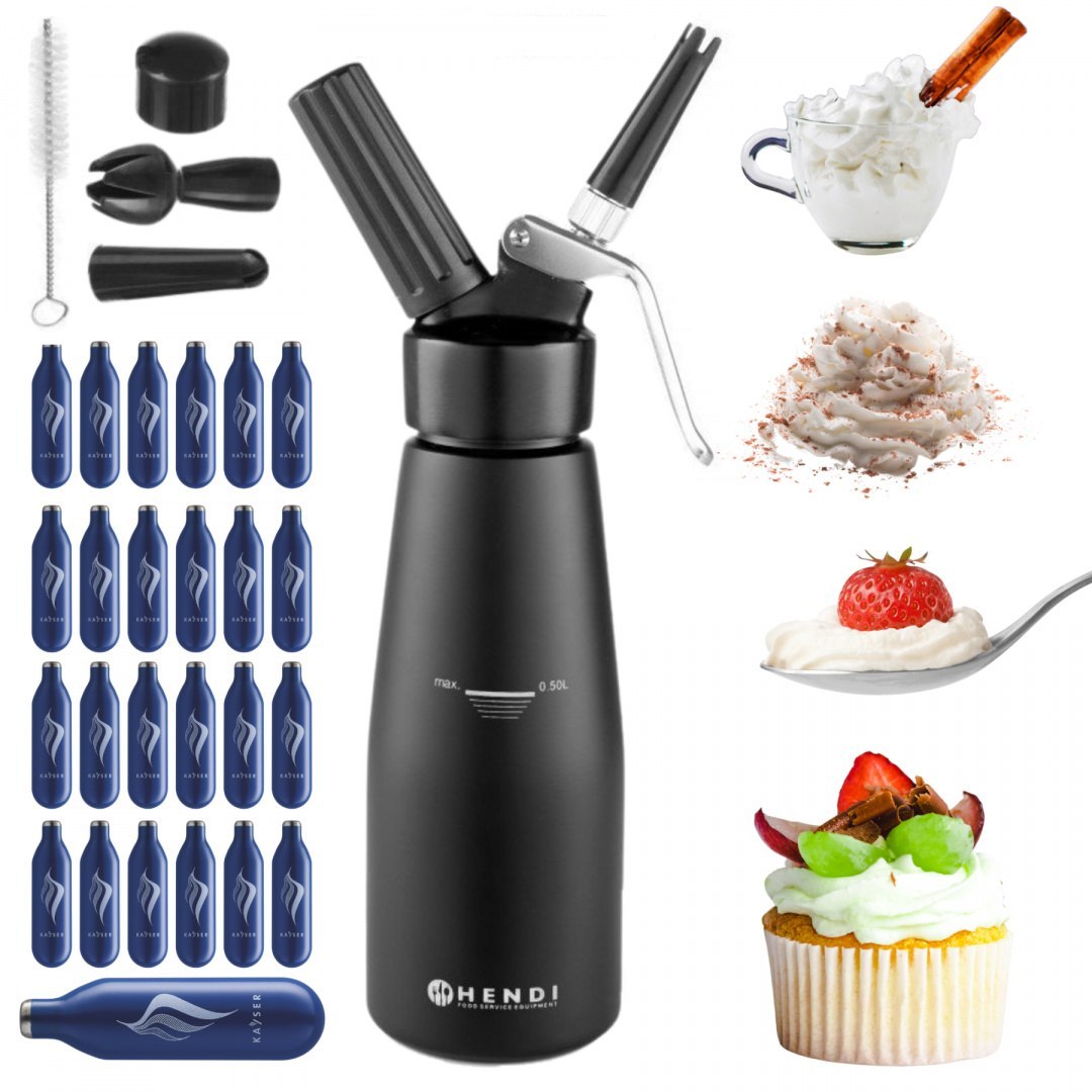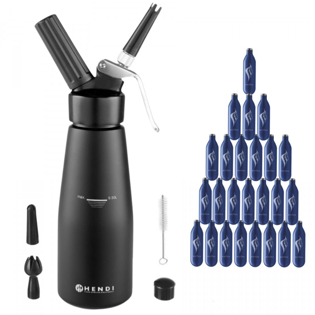 Dozownik Syfon Do Bitej Śmietany 0,5l Czarny + 25 Naboi Hendi 588420_25