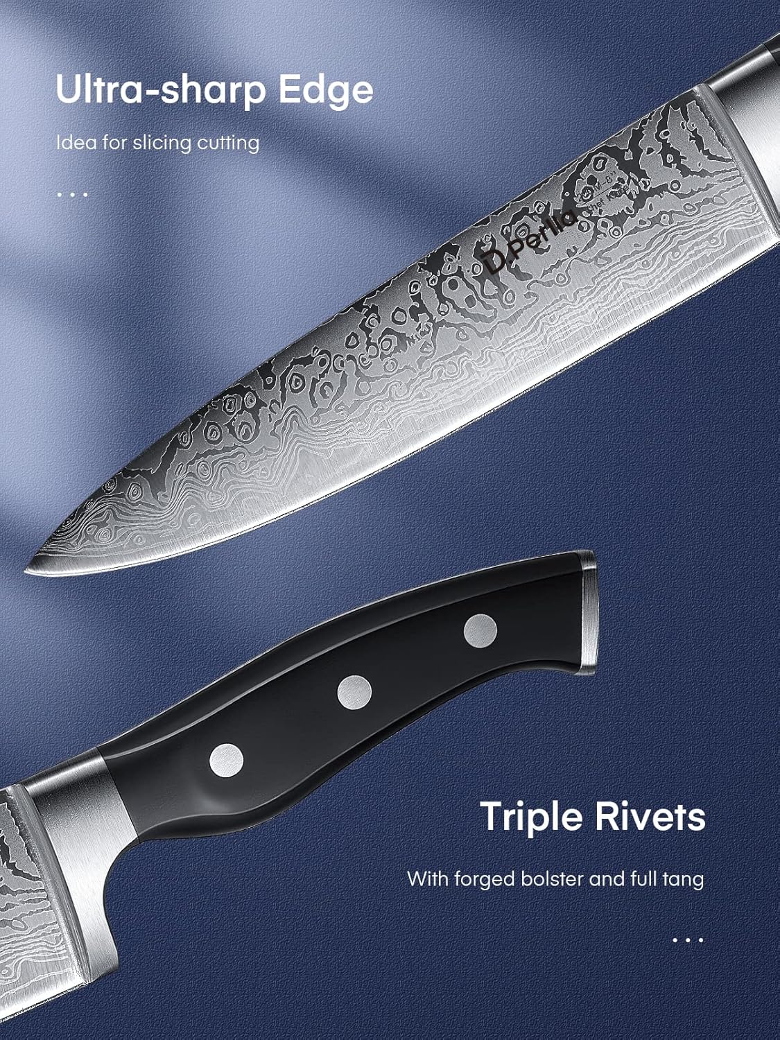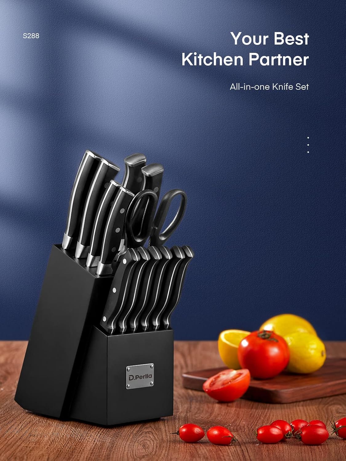D.Perlla Zestaw noży, 14-częściowy zestaw noży kuchennych, ostre sztućce zestaw noży ze Samoostrzący blok noża, zestaw bloków na noże z wysokowęglową niemiecką stal nierdzewna, Czarny