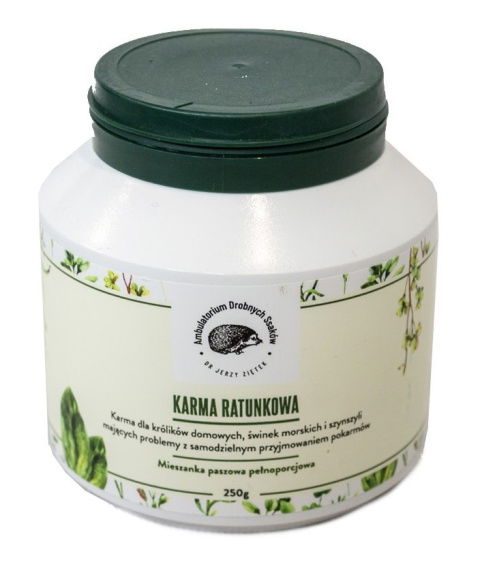 Podstawowa karma ratunkowa przeznaczona dla zwierząt roślinożernych: królików, świnek morskich oraz szynszyli, które mają problem z samodzielnym przyjmowaniem pokarmów.