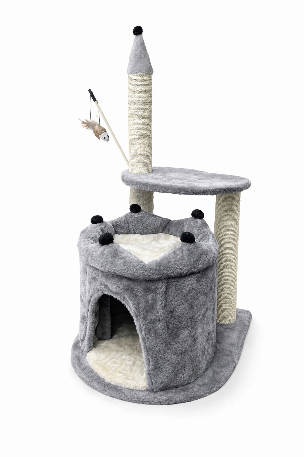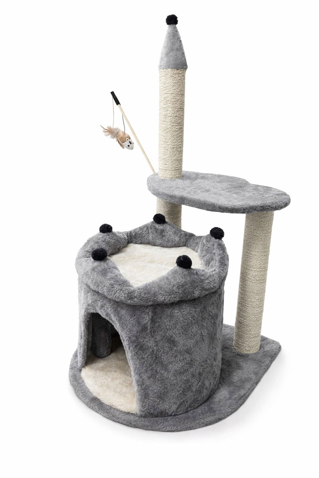 Nowoczesny i funkcjonalny drapak dla kota z miękką budką, półką widokową oraz wysokim słupkiem do drapania. Idealny do zabawy, odpoczynku i pielęgnacji pazurków. Stabilna konstrukcja oraz naturalny sznur sizalowy sprawiają, że jest bezpieczny nawet dla energicznych kotów.