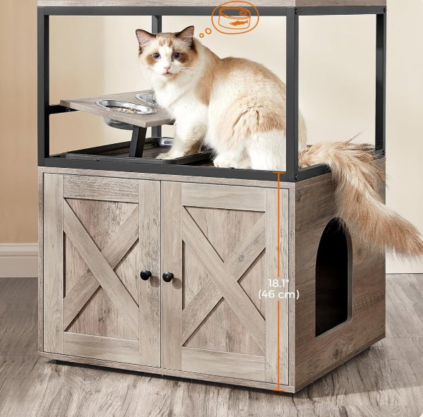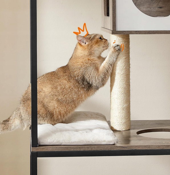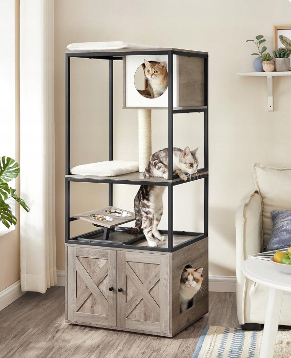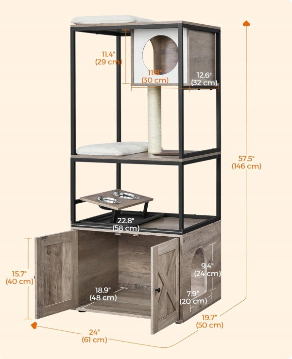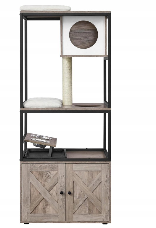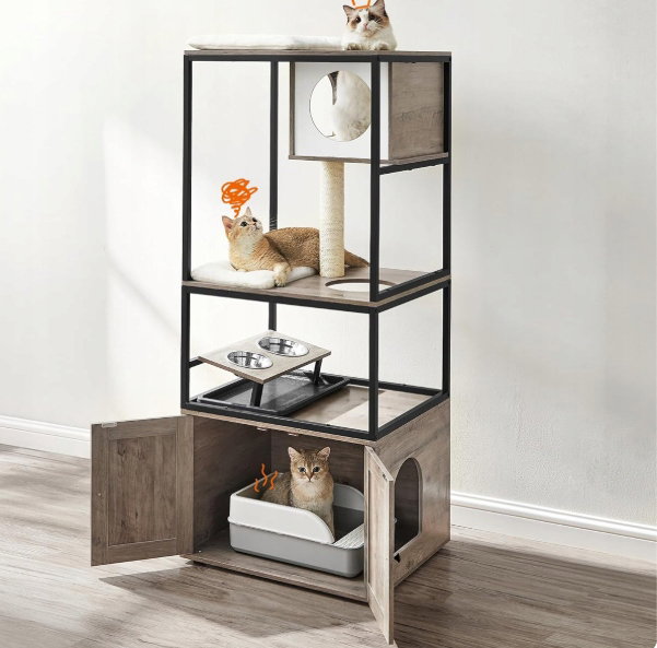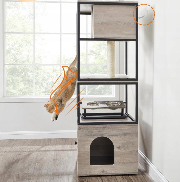 - ✴️[4-piętrowy domek dla kota] Tak, prawdziwy, duży domek. Z górną grzędą, kocią jaskinią, drapakiem, podwyższonym stojakiem na miski i obudową kuwety – teraz Twój kot może obserwować, odpoczywać, bawić się, jeść i odpowiadać na zew natury… wszystko w jednym miejscu!