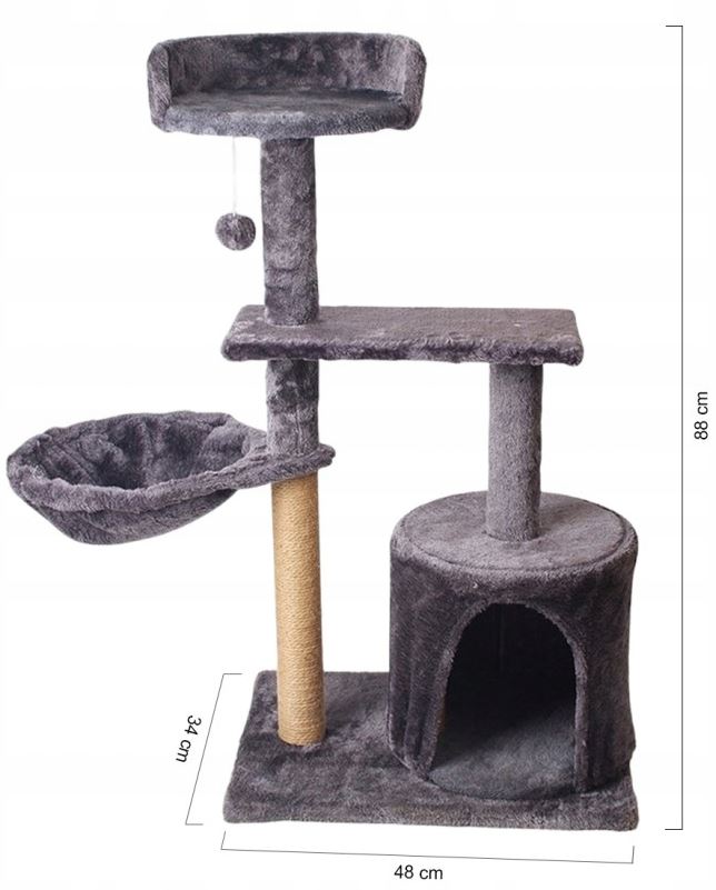 - Wielofunkcyjność – Służy jako miejsce do zabawy, wspinaczki, drapania oraz odpoczynku.