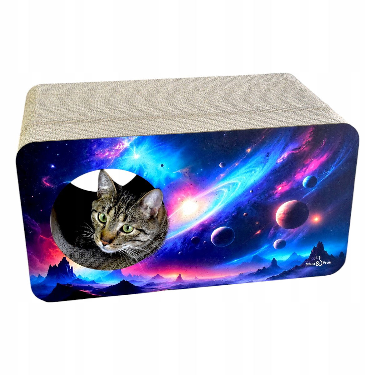 Drapak Mruu&Pruu KOSMOS posiada otwory średnicy 18cm aby Twój kot mógł schować się w przestrzeni kosmicznej i wypatrywać swojej zdobyczy lub po prostu zdrzemnąć się w swojej wygodnej i ciepłej kryjówce. Nasze rozwiązanie dla kota nie tylko chroni meble przed zniszczeniem, ale także zapewnia kotu miejsce do zabawy i aktywności. Drapak Mruu&Pruu KOSMOS to doskonały wybór dla każdego kota.