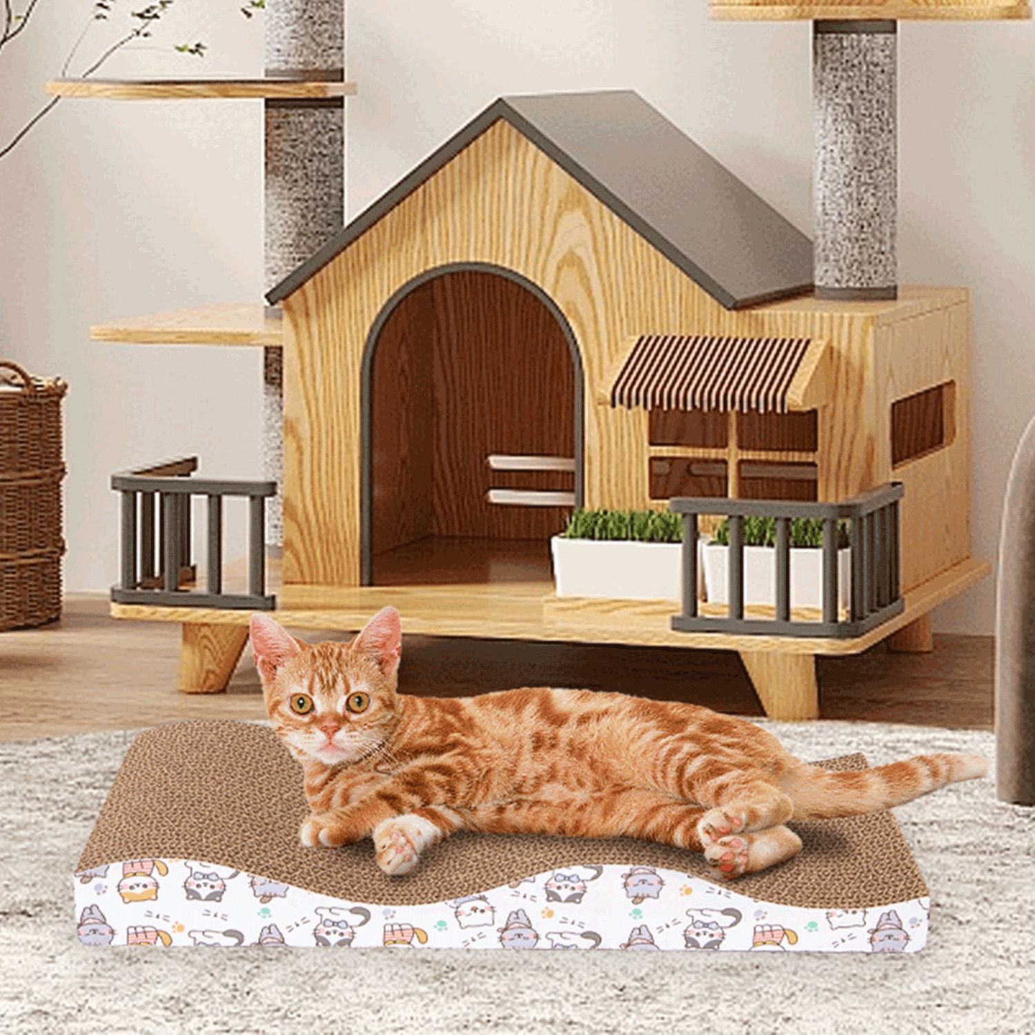 ✅ wytrzymała i lekka platforma do drapania jest wykonana z tektury o dużej gęstości, która wytrzyma wiele godzin drapania
