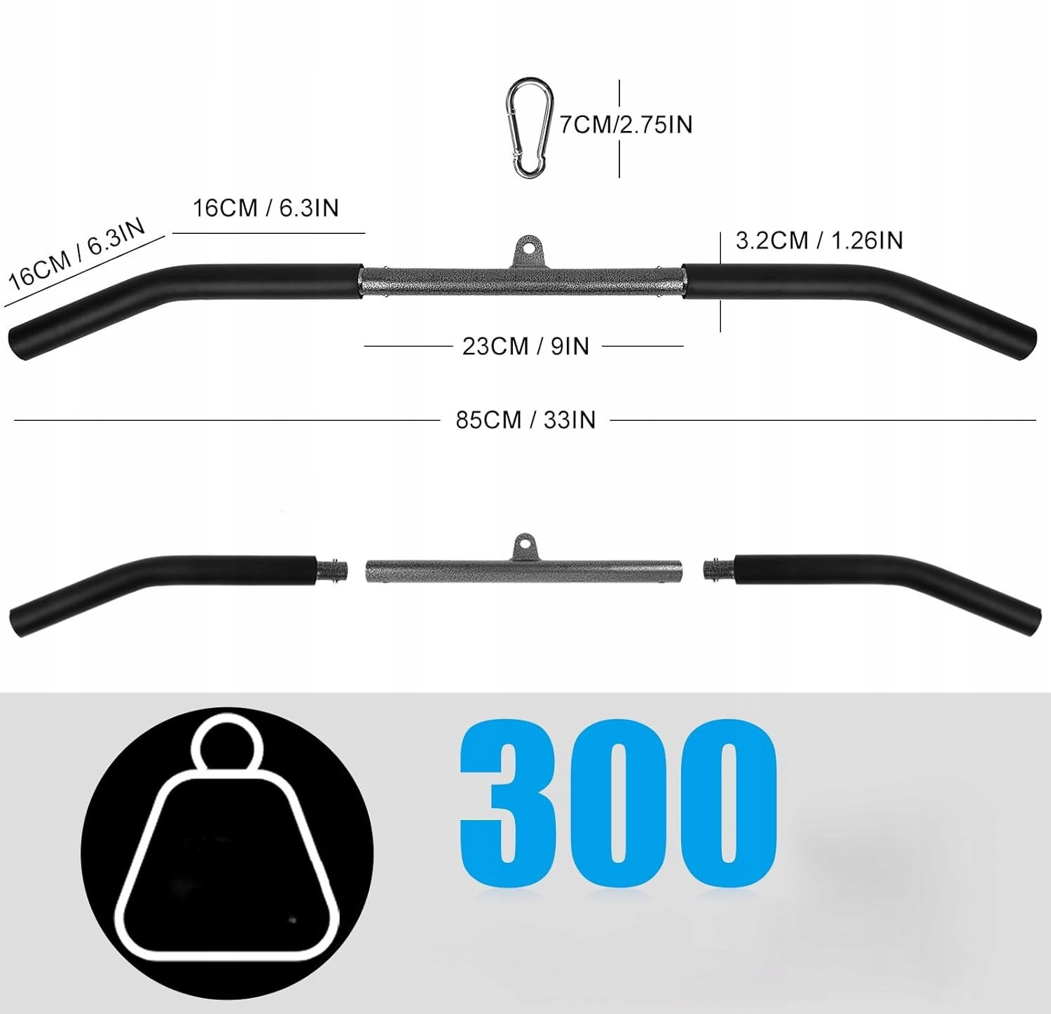 - 【Ekskluzywna Sztanga do Ściągania】 Wysokiej jakości stal, wygodna pianka. Powłoka antypoślizgowa jest antykorozyjna, wodoodporna i chroni przed rdzą. Maksymalne obciążenie: 130kg/300lbs. Opcje: 85cm (z przegubem obrotowym), 100cm (bez przegubu)