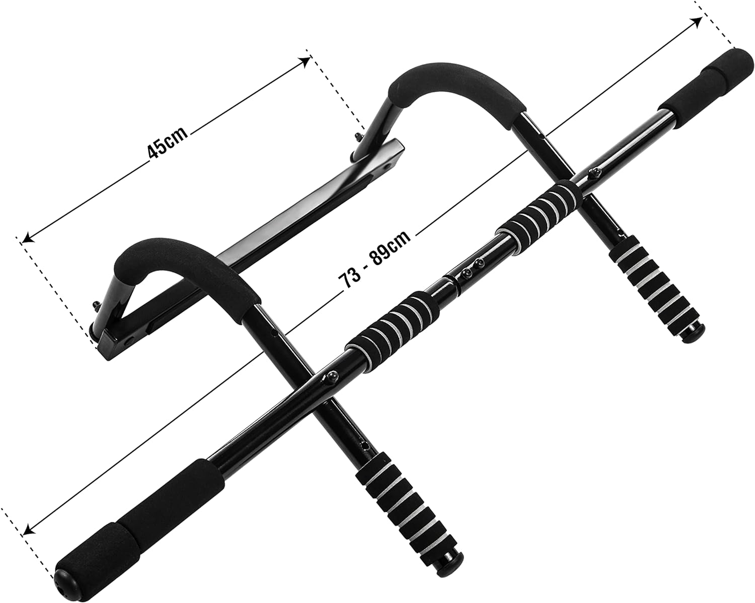SOLIDNE I WYTRZYMAŁE: Jest to idealne urządzenie do ościeżnic o wymiarach od ok. 73 do 89 cm długości i od 11 do 26 cm głębokości. Dzięki solidnej stalowej konstrukcji wytrzymuje ciężar użytkownika wynoszący 100 kg
