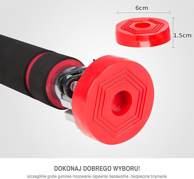Dwie dźwignie napinające zapobiegają obracaniu się drążka fitness podczas treningu dla maksymalnego bezpieczeństwa, drążek do podnoszenia podbródka łatwo się zaciska i może być używany z gumowymi podkładkami do bezpiecznego mocowania