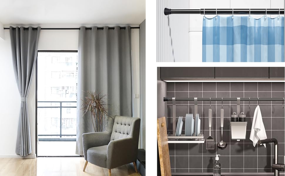 Solidny i łatwy w montażu drążek napinany Venwemong sprawdzi się doskonale jako karnisz do zasłony prysznicowej, drążek do szafy, okna czy drzwi. Dzięki mechanizmowi teleskopowemu można go szybko rozłożyć i zamocować bez potrzeby wiercenia, śrub czy narzędzi. Zastosowane sprężyny SK8 oraz antypoślizgowe końcówki zapewniają stabilność i bezpieczeństwo.