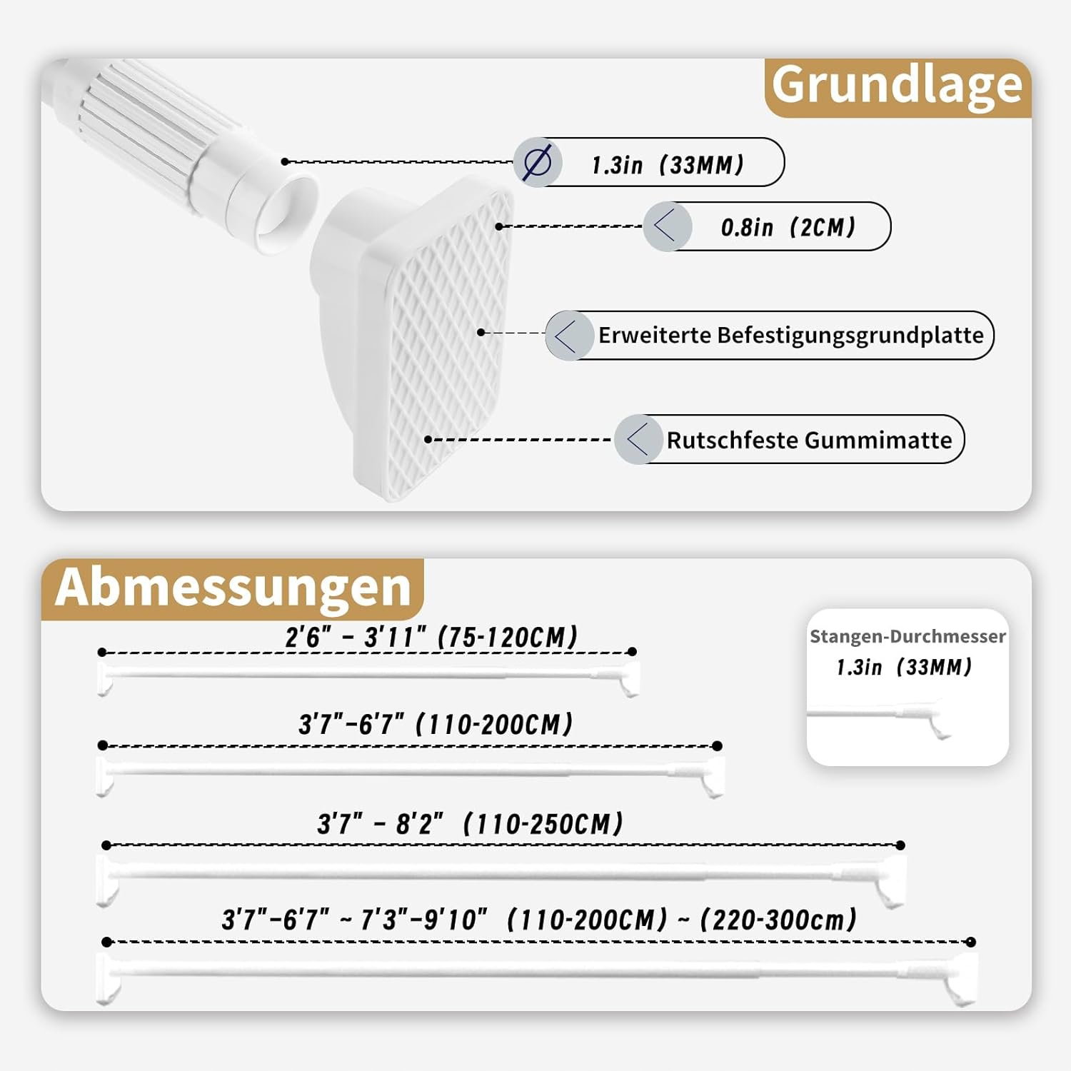 Dopasuj drążek dokładnie do swoich potrzeb! Zakres regulacji od 75 do 120 cm sprawia, że idealnie pasuje do różnych pomieszczeń – łazienki, sypialni, garderoby czy kuchni.