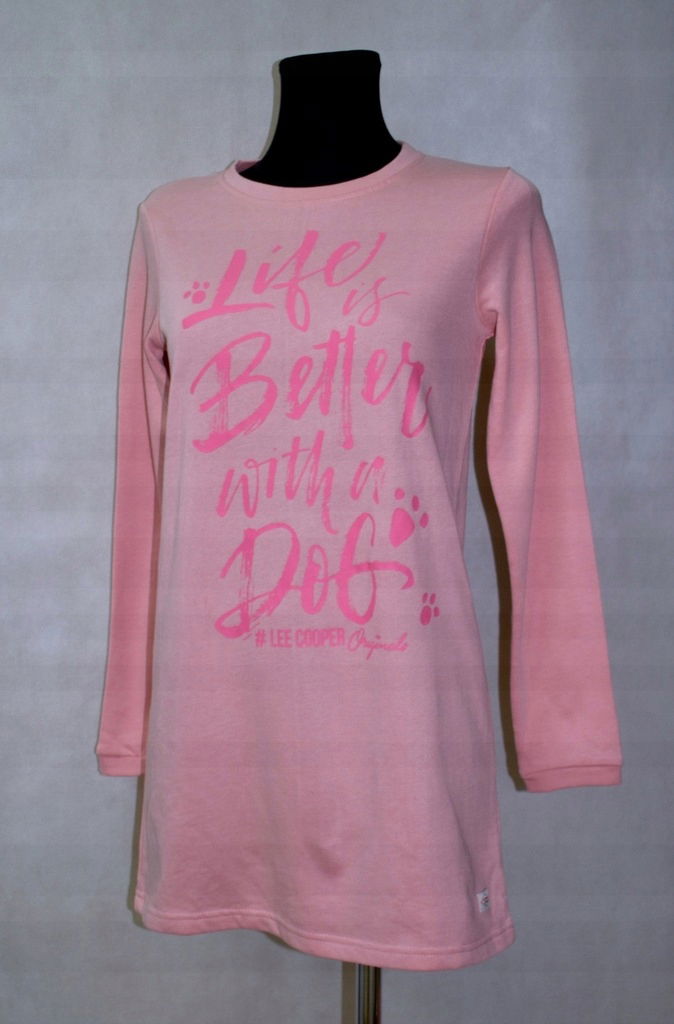 Witaj na aukcji! Przedstawiamy uroczą różową dresową sukienkę marki Lee Cooper w rozmiarze 164 cm. Doskonały wybór dla Twojej córki, która lubi być modna, wygodna i ciepła!