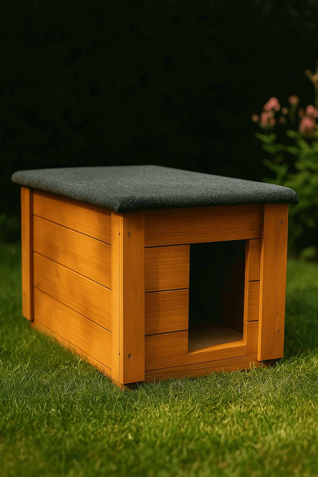 Nowoczesny i prosty design sprawia, że buda doskonale wpasuje się w każdy ogród, taras czy podwórko. Dzięki odpowiednio dobranym wymiarom nadaje się zarówno dla psów średnich i małych ras, jak i dla kotów.