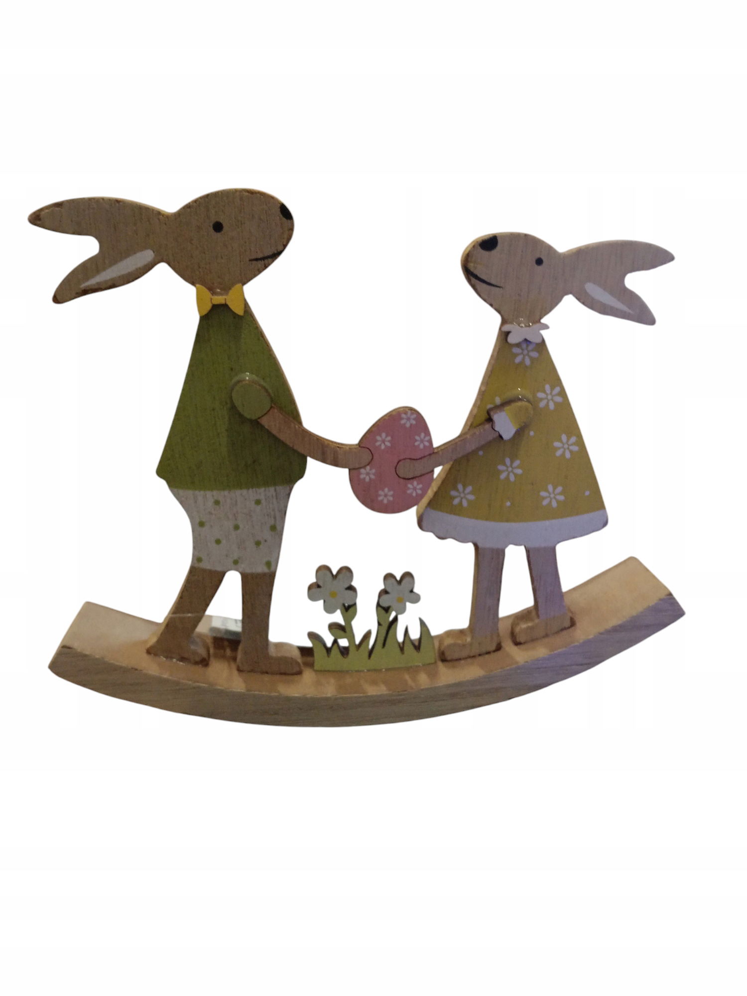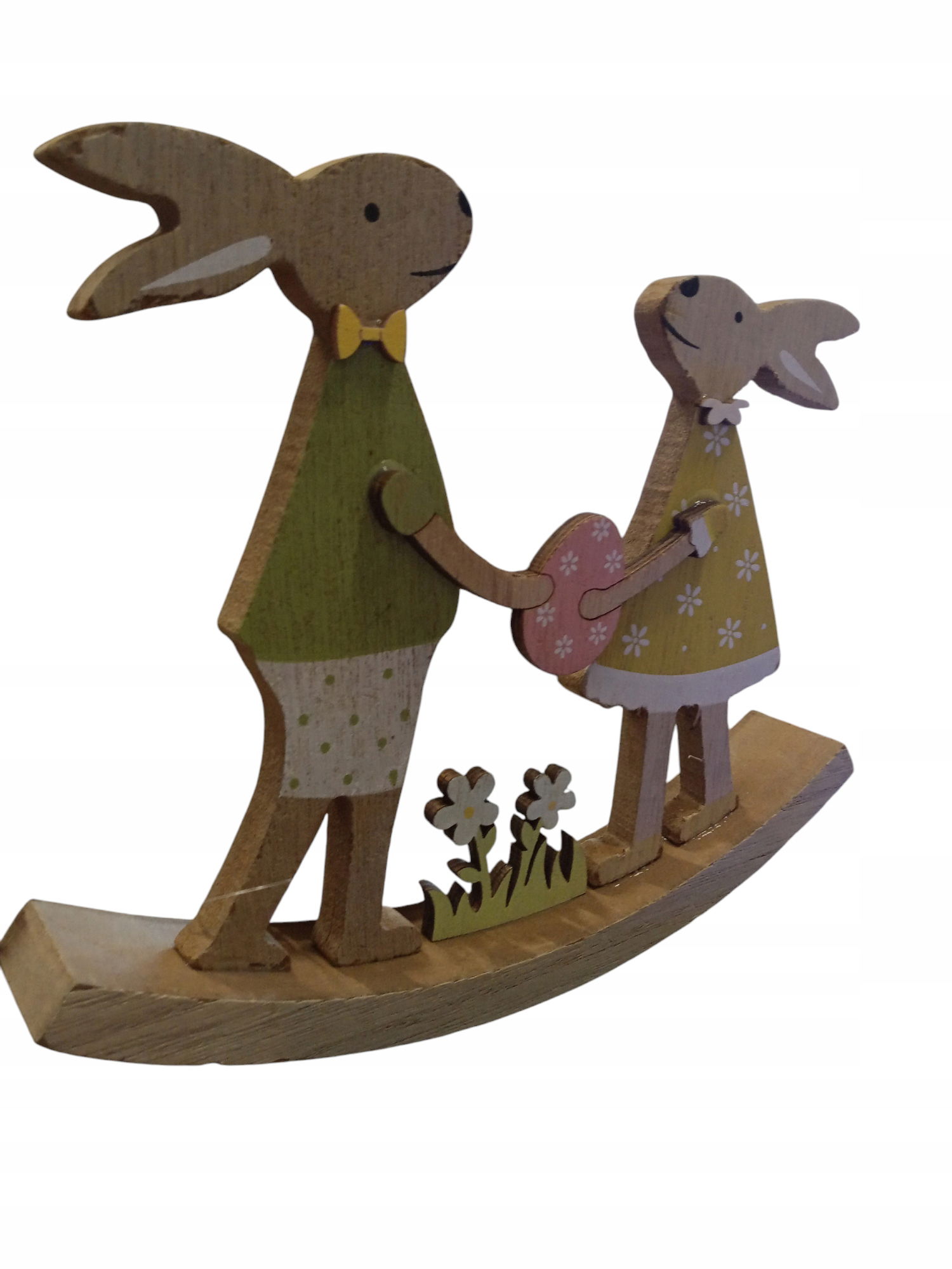 Drewniana dekoracja wielkanocna zające na płozie pisanka 20 x 17 cm