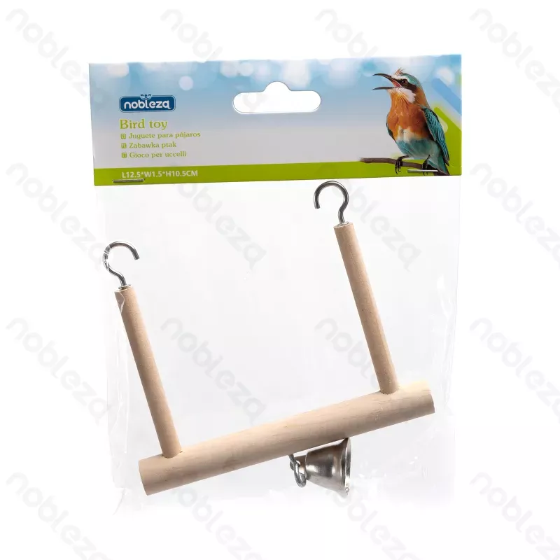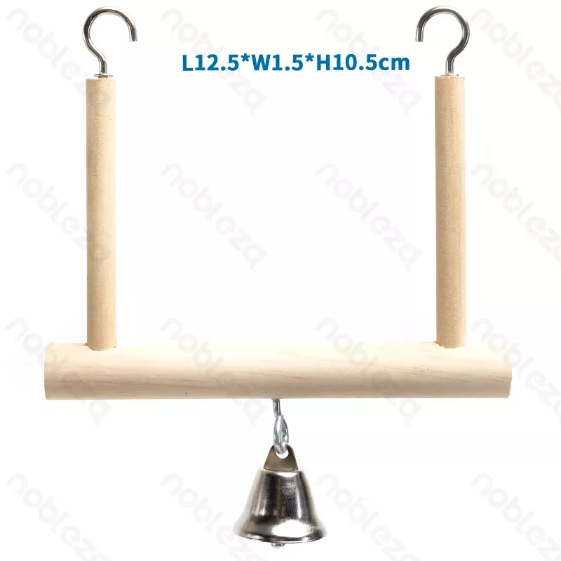 Huśtawka drewniana z dzwonkiem dla małych ptaków, papugi falistej i innych małych papug. Będzie doskonałą zabawką do huśtania, która dodatkowo stymuluje rozwój intelektualny ptaków oraz zapewnia im rozrywkę.