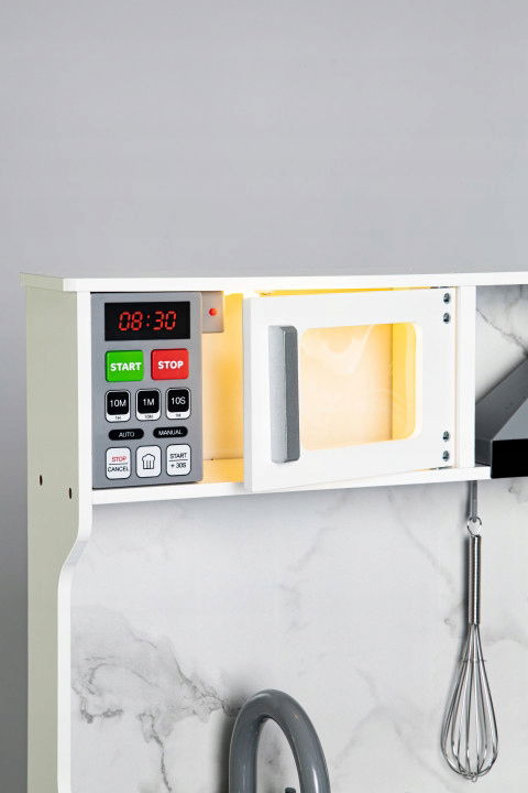 - Obok okapu umieszczono mikrofalówkę, w której szef kuchni może "podgrzewać" swoje dania. Efekty świetlne i dźwiękowe zapewnią mu mnóstwo frajdy.
