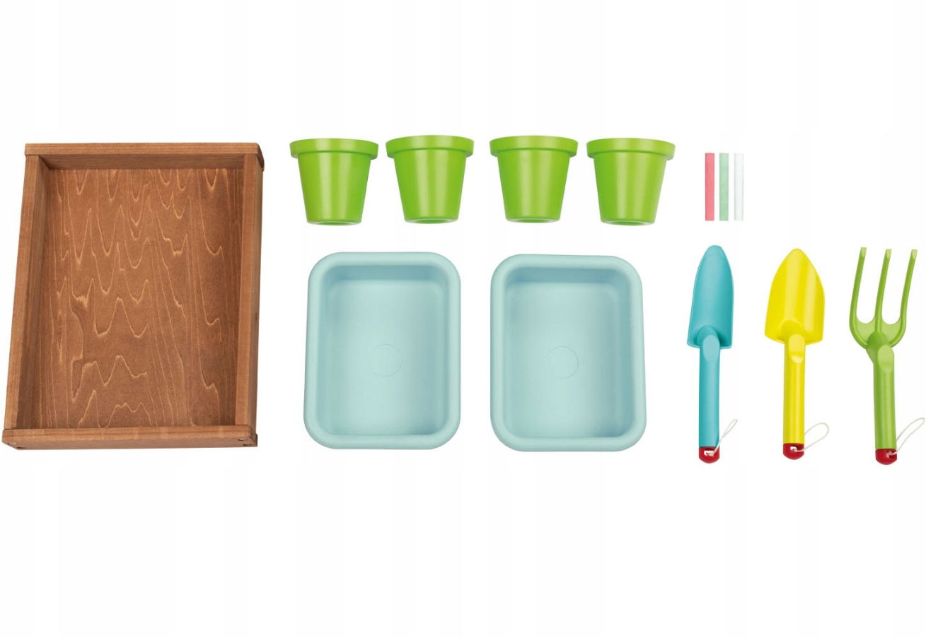 - narzędzia ogrodowe - wąska i szeroka łopatka oraz grabki