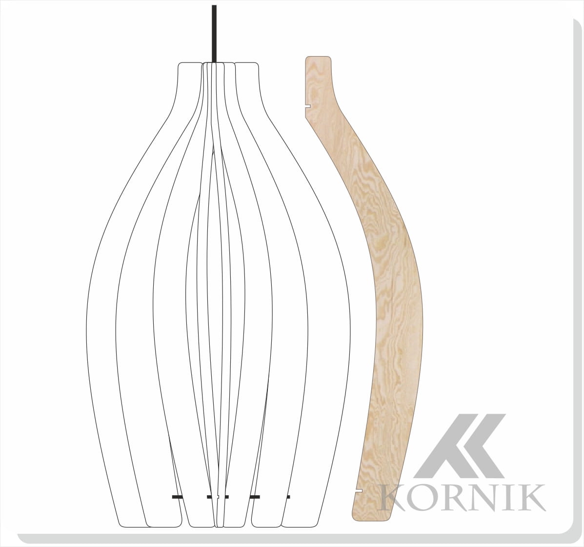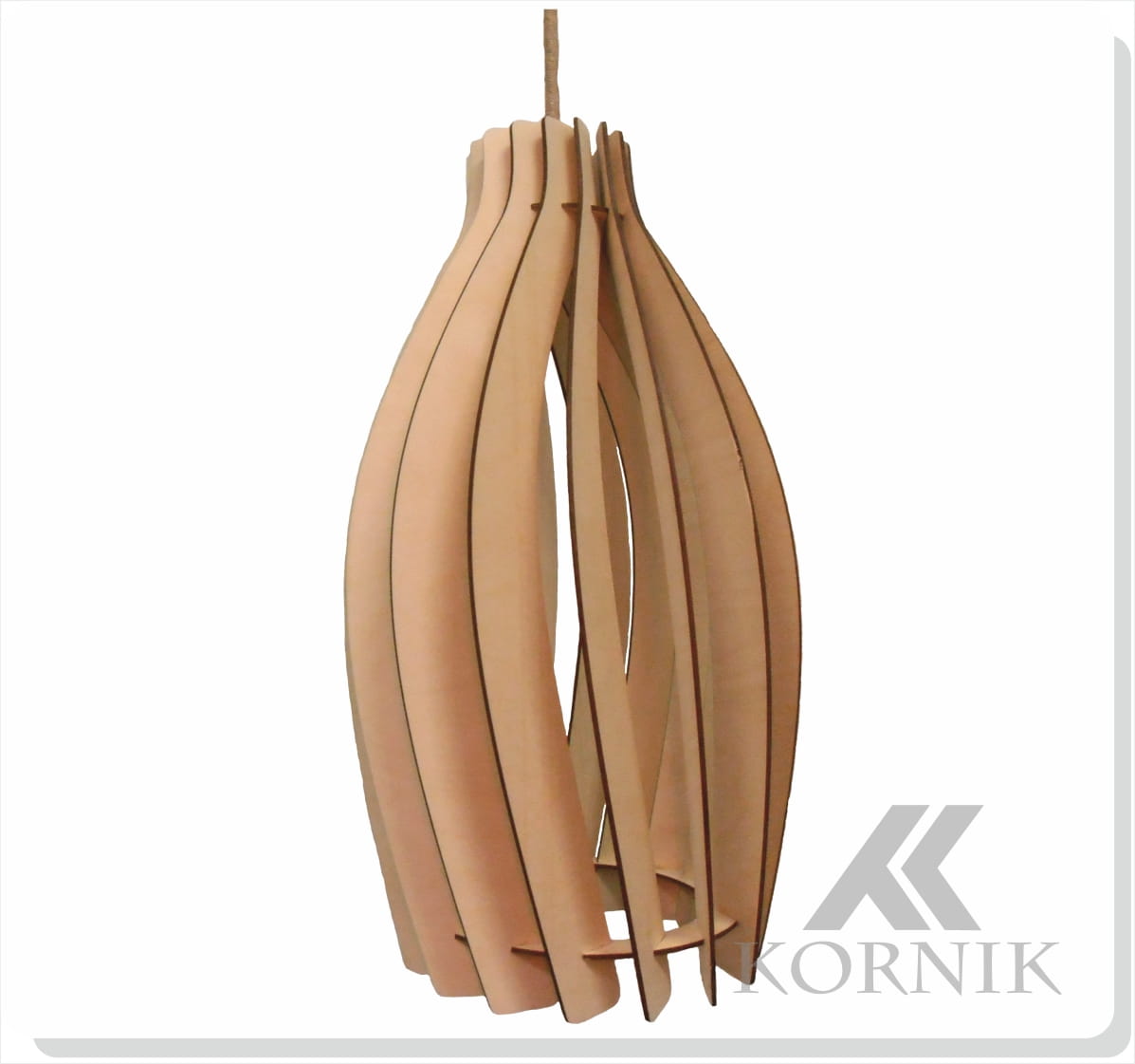 Materiał: sklejka brzozowa 3 mm Kolor: naturalne drewno Przewód: 100 cm, w oplocie jutowym Podsufitka: drewniana lub czarna metalowa (do wyboru) Oprawa żarówki: czarna Typ lampy: wisząca Gwint: E27 Liczba źródeł światła: 1 Maksymalna moc: LED do 20 W (żarówka nie jest dołączona) Napięcie: 230 V Produkcja: Polska