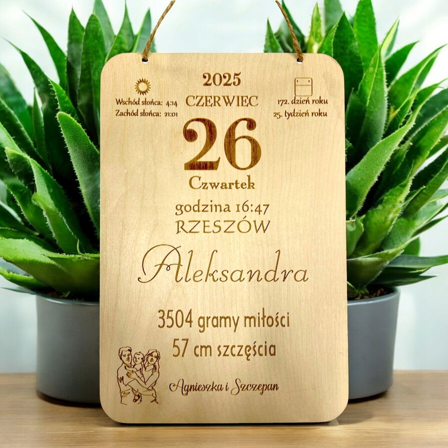 Szukasz wyjątkowego i spersonalizowanego prezentu dla nowo narodzonego maluszka? Oto nasza drewniana metryczka wykonana z wysokiej jakości sklejki o rozmiarze A4, która idealnie upamiętni wyjątkowy dzień narodzin Twojego dziecka!