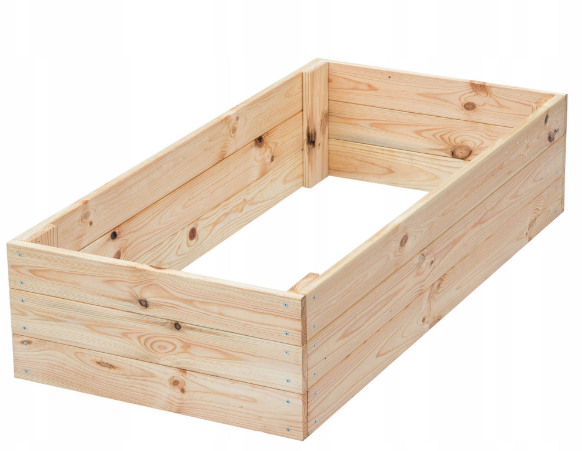 warunków do tradycyjnej uprawy w gruncie, nasza drewniana skrzynia na warzywa jest odpowiedzią na Twoje potrzeby. W całości wyprodukowana w Polsce z wysokiej jakości drewna iglastego, nasza skrzynia ogrodowa Premium to nie tylko praktyczne narzędzie ogrodowe, ale także estetyczny element dekoracyjny, który ozdobi każdy ogród. Rozmiar (+/-) długość 120 cm szerokość 40 cm wysokość 30 cm Korzyści używania podwyższonych grządek 1. Idealny porządek Dzięki naszej skrzyni utrzymanie porządku na Twojej działce będzie proste jak nigdy dotąd. Przyspieszysz kiełkowanie i uprawa roślin stanie się znacznie łatwiejsza. 2. Uniwersalność Nie masz własnej działki? To nie problem! doskonale sprawdzi się również na tarasie czy balkonie, gdzie stworzysz swój własny ogródek warzywny. 3. Łatwy montaż