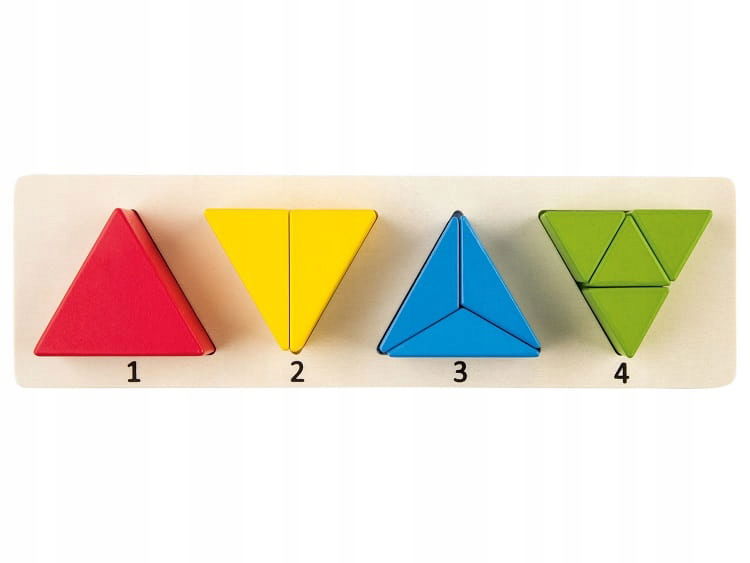 Drewniane puzzle geometryczne wspierają rozwój motoryki małej, umiejętność rozpoznawania kształtów i kolorów oraz rozwój zmysłu wizualno-przestrzennego.