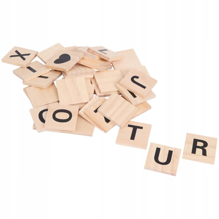 DREWNIANE DUŻE LITERY LITERKI ALFABET SYMBOLE DO NAUKI OZDÓB 36SZT 40MM FSC