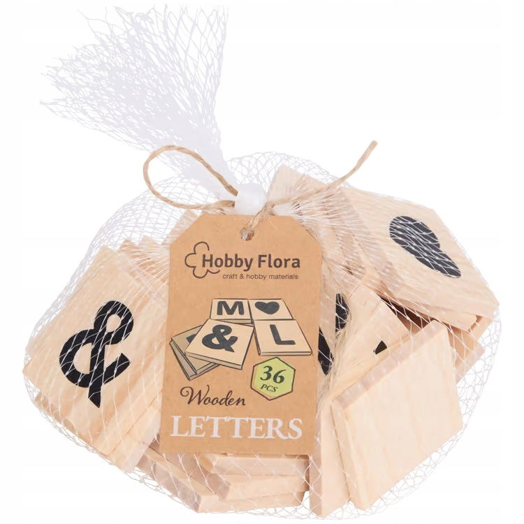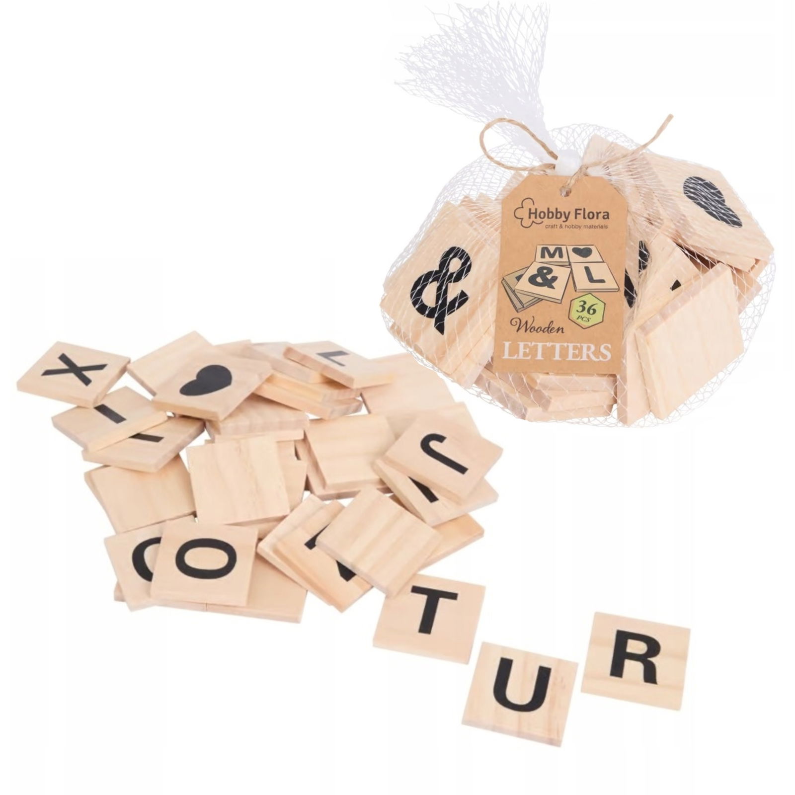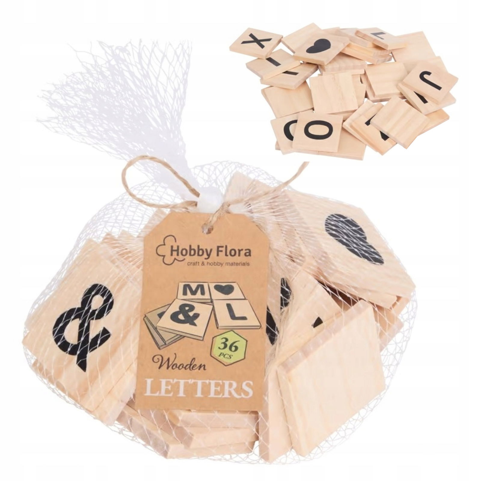 DREWNIANE LITERY CYFRY SYMBOLE DO RĘKODZIEŁA 36 SZTUK DUŻE DO KARTEK RAMEK