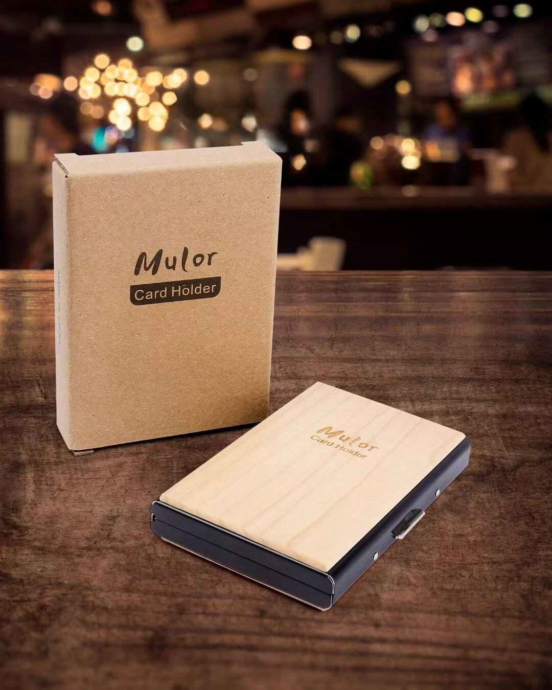 Mulor Drewniany uchwyt na karty blokada RFID wbudowana metalowa obudowa portfel na karty kredytowe unisex kreatywne prezenty, Drewno klonowe, Etui na karty