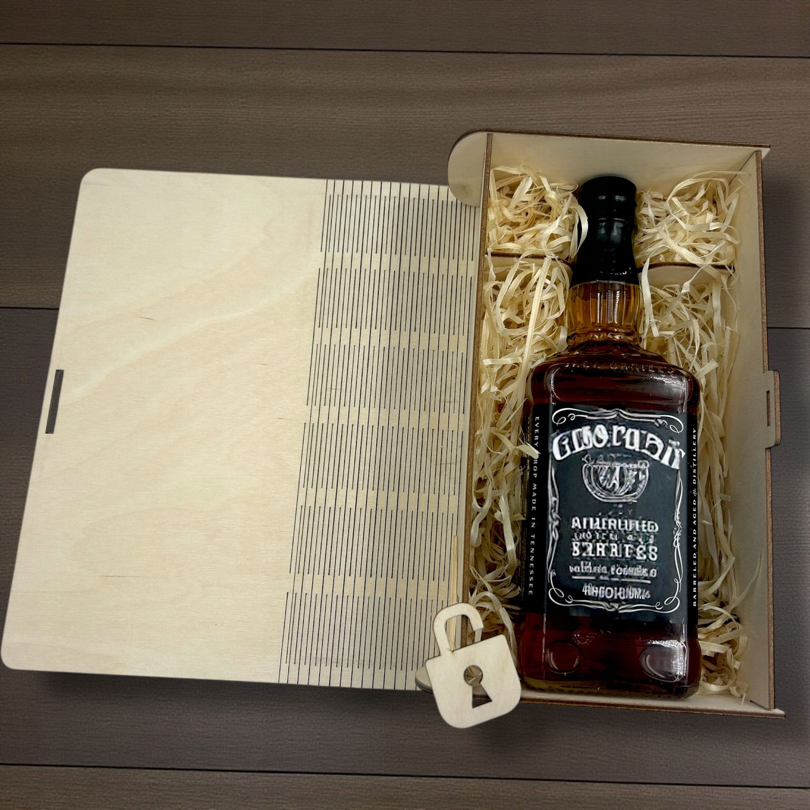 Wykonane z wysokiej jakości sklejki, starannie wykończone i ozdobione precyzyjnym grawerem – prezentuje się elegancko i z klasą. Doskonale sprawdzi się jako opakowanie na butelkę whisky.