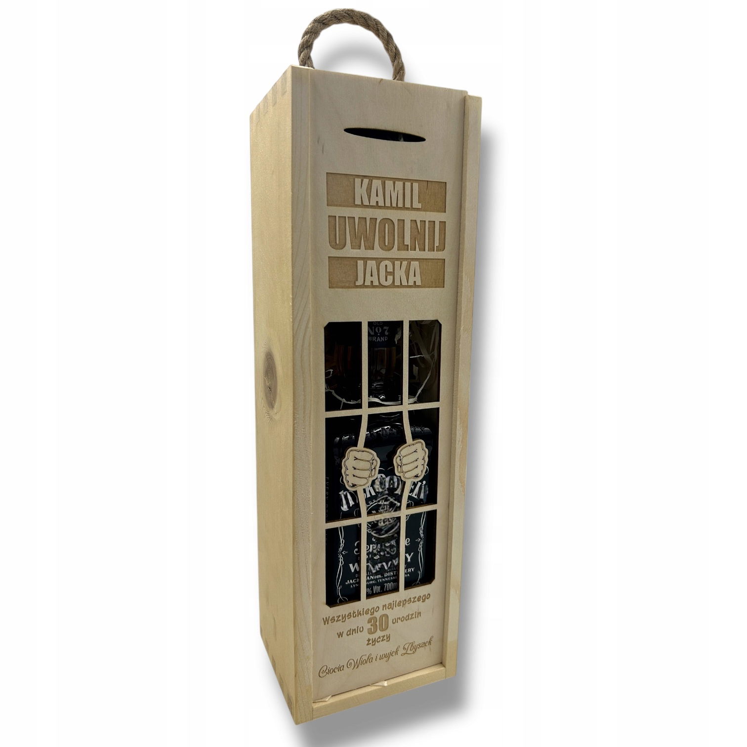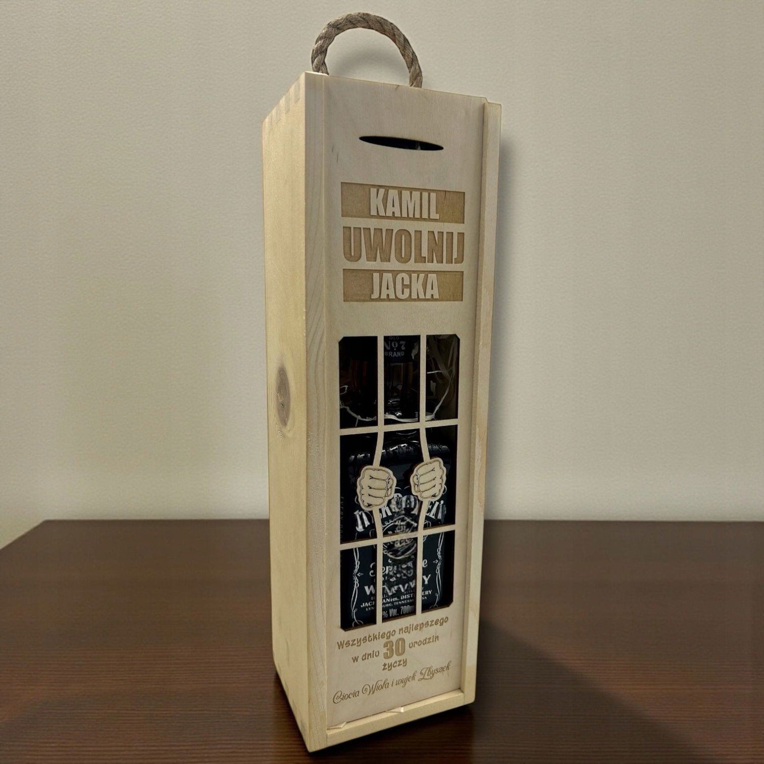 - 1 × drewniana skrzynka na alkohol z grawerem