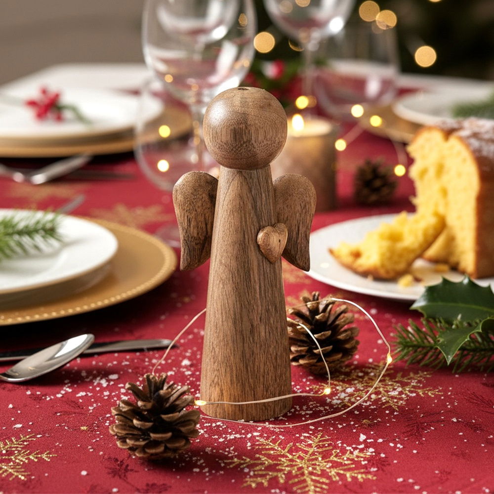 Figurka anioła wykonana z naturalnego drewna mangowca. Prezentuje się bardzo efektownie. Figurka będzie wyjątkową dekoracją oraz pomysłem na oryginalny upominek. Idealna na okres zimowo, świąteczny, ale możemy użytkować ją również cały rok.