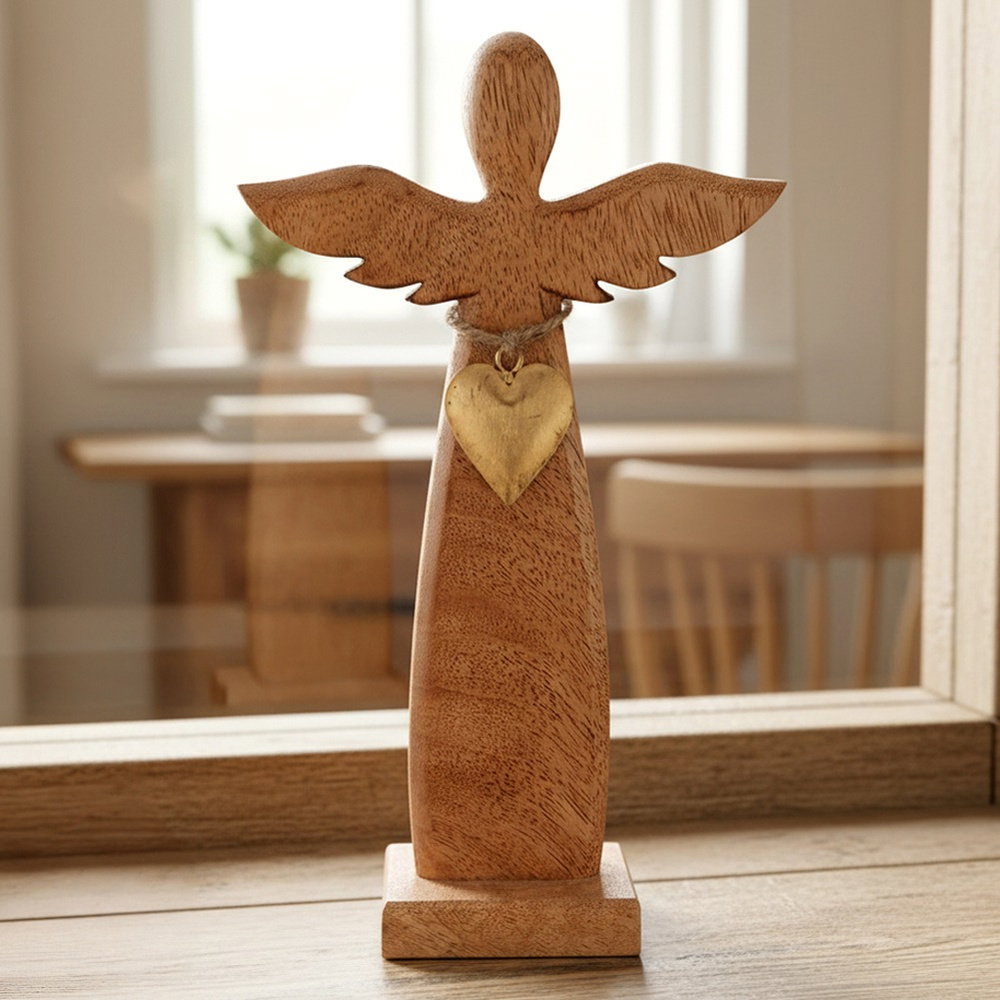 Drewniany Anioł Figurka Anioła Dekoracyjna Ozdobna Figura Stojąca 26 cm
