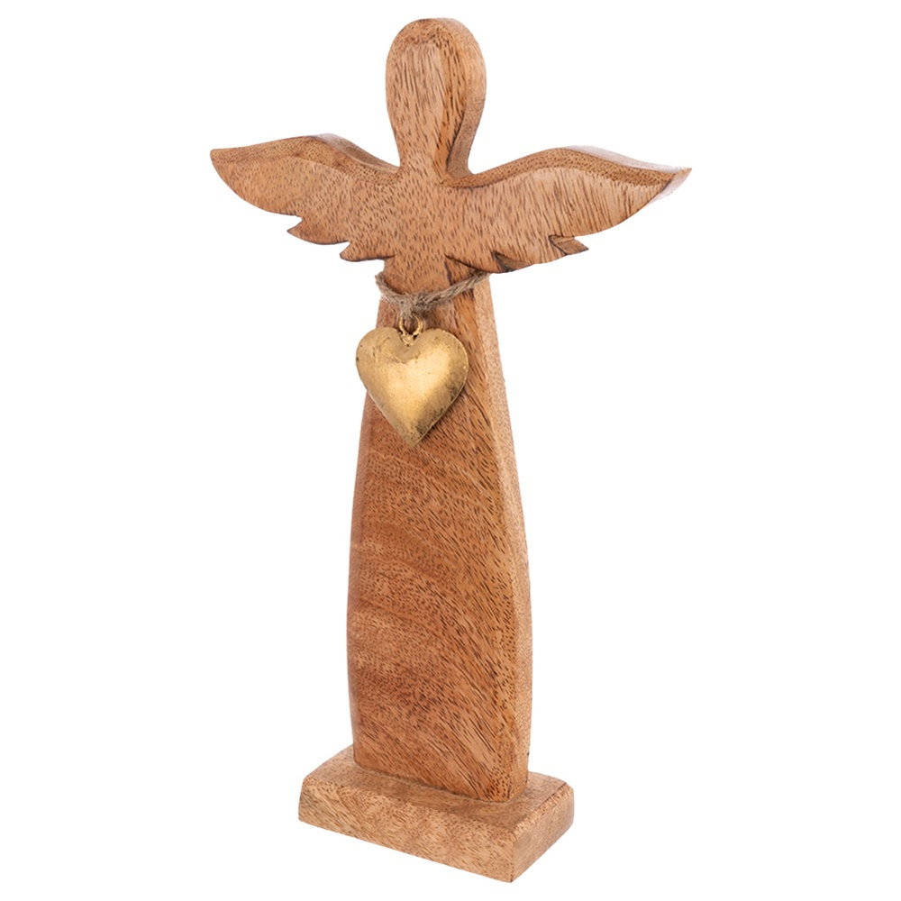 Figurka anioła wykonana z naturalnego drewna mangowca. Prezentuje się bardzo efektownie. Figurka będzie wyjątkową dekoracją oraz pomysłem na oryginalny upominek.