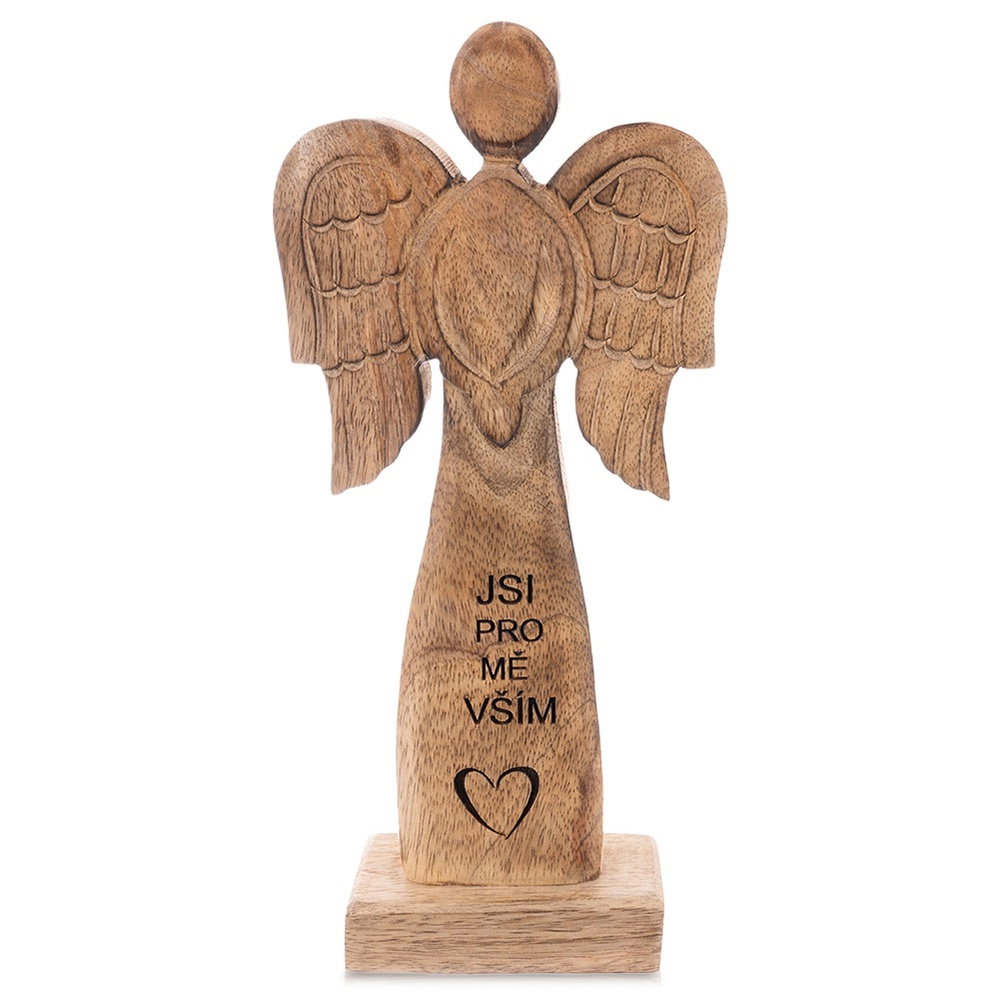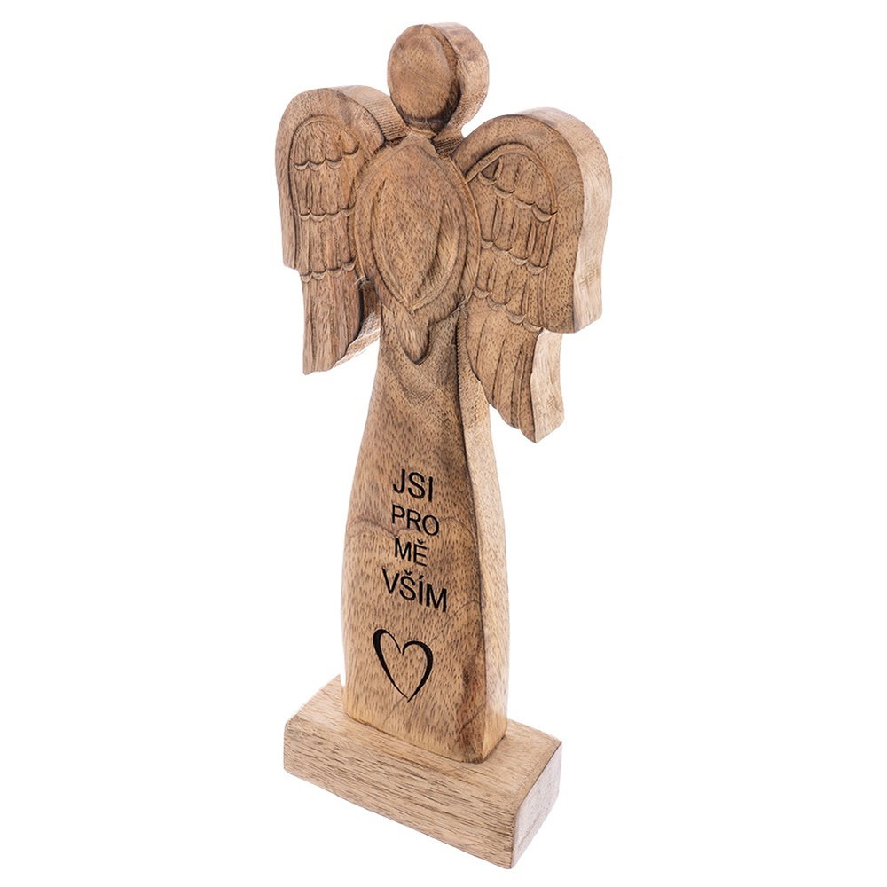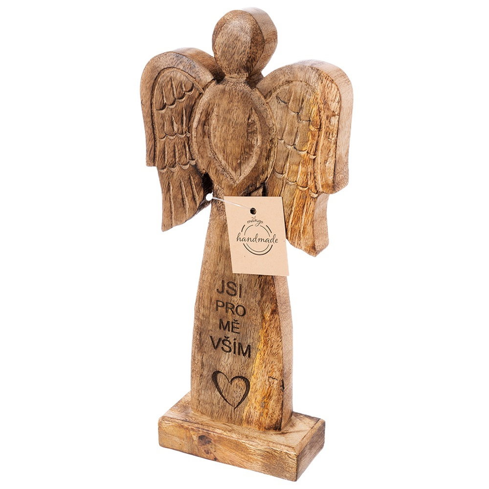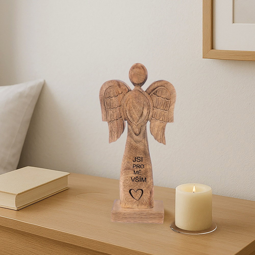 Figurka anioła wykonana z naturalnego drewna mangowca. Prezentuje się bardzo efektownie. Figurka będzie wyjątkową dekoracją oraz pomysłem na oryginalny upominek. Idealna na okres zimowo, świąteczny, ale możemy użytkować ją również cały rok.