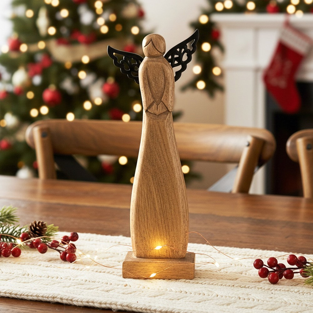 Figurka anioła wykonana z naturalnego drewna mangowca. Prezentuje się bardzo efektownie. Figurka będzie wyjątkową dekoracją oraz pomysłem na oryginalny upominek. Idealna na okres zimowo, świąteczny, ale możemy użytkować ją również cały rok.
