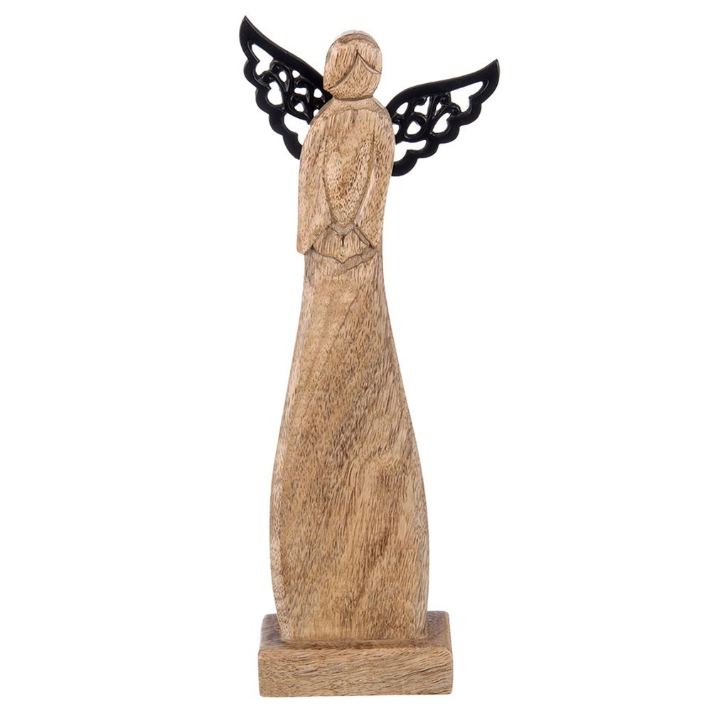 Wykonana z drewna mangowca - Anioł wykonany jest z naturalnego drewna mangowca, utrzymanego w naturalnych barwach. Skrzydła anioła wykonane z metalu w czarnym kolorze.