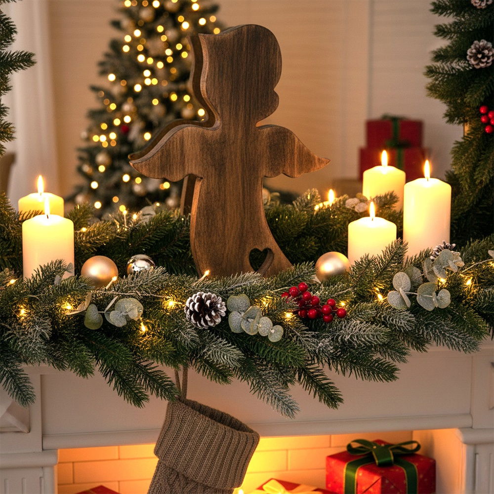 Drewniany Anioł Figurka Anioła Dekoracyjna Ozdobna Figura Stojąca 38,5 cm