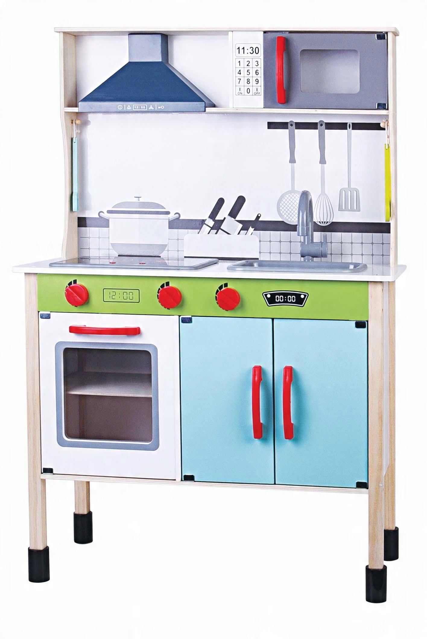 Uzupełnij drewnianą kuchenkę dodatkowymi akcesoriami, takimi jak blender.