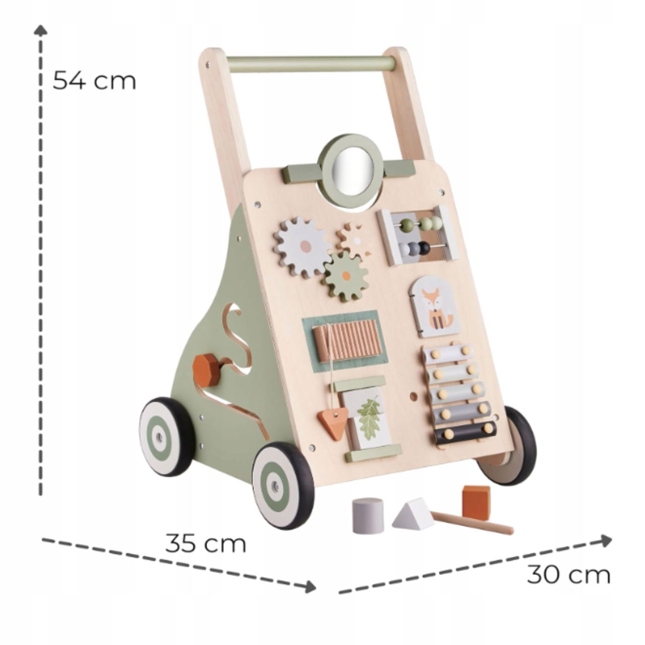 Drewniany chodzik dla niemowląt Haus Projekt Woodland to idealna zabawka wspierająca naukę chodzenia i rozwój motoryczny malucha. Wyjątkowo stabilna konstrukcja z naturalnego drewna gwarantuje bezpieczeństwo, a wbudowane centrum aktywności rozwija zmysły i kreatywność dziecka. To wspaniały pomysł na prezent dla chłopca lub dziewczynki – funkcjonalny, edukacyjny i pięknie wykonany.