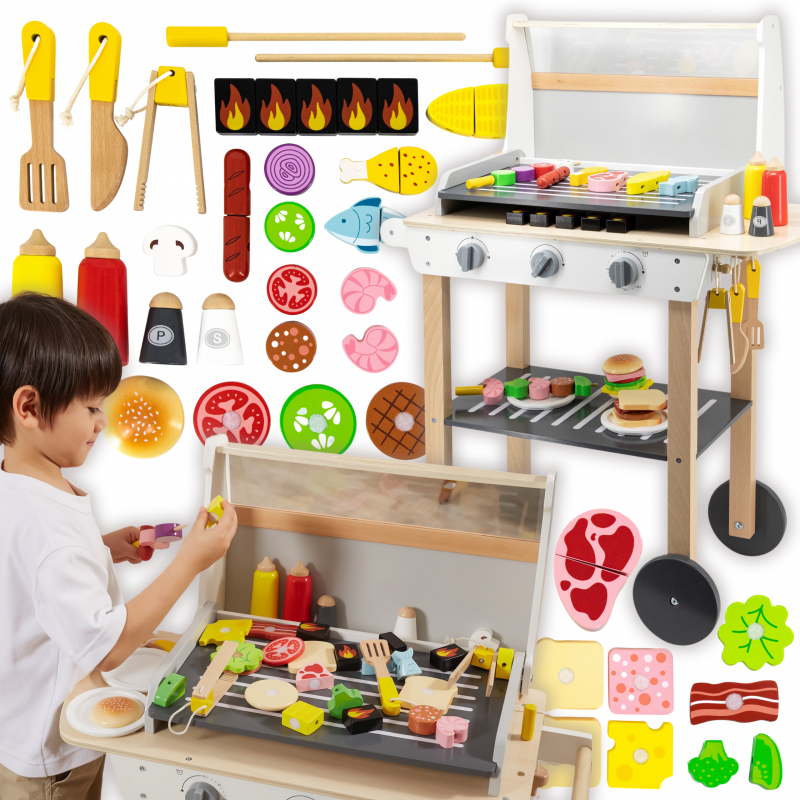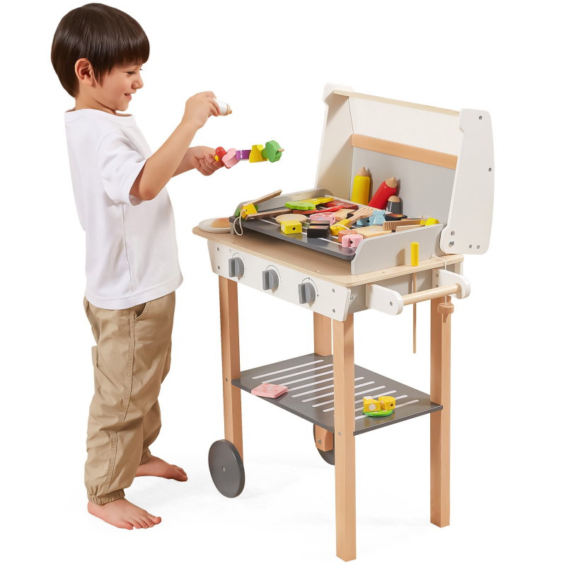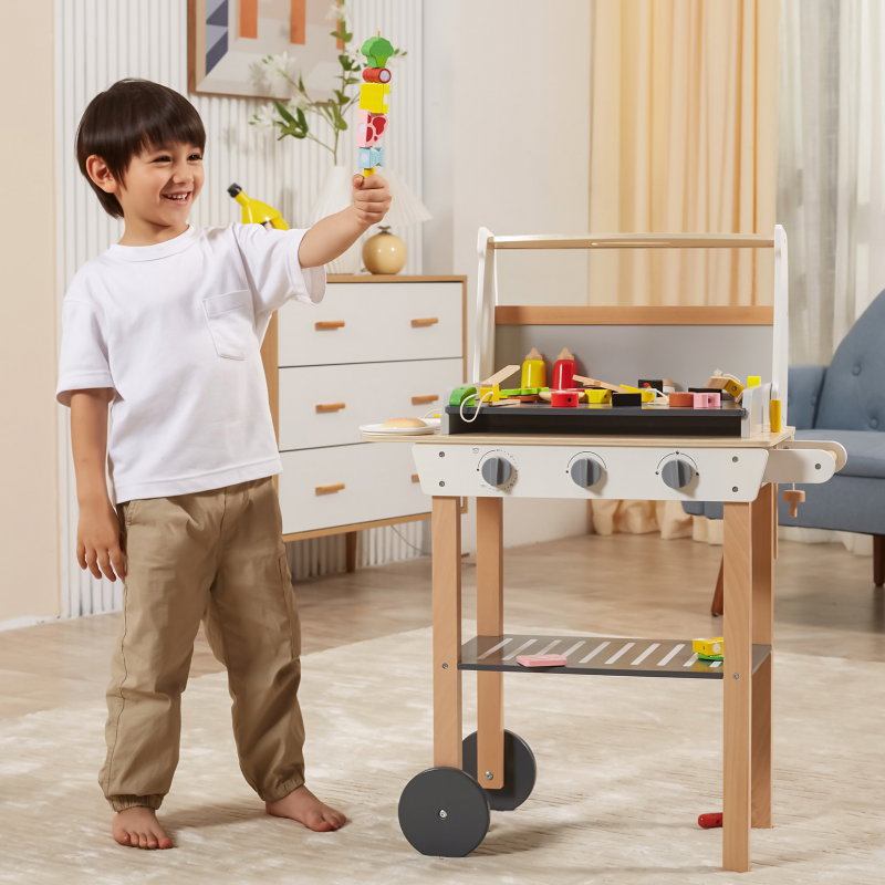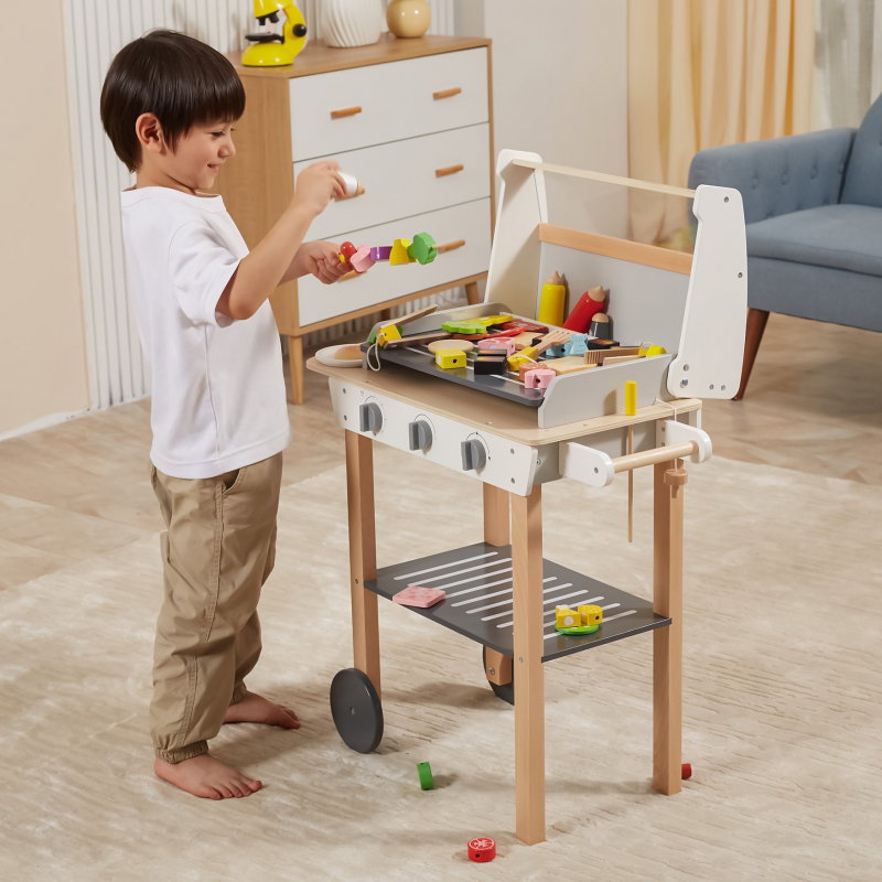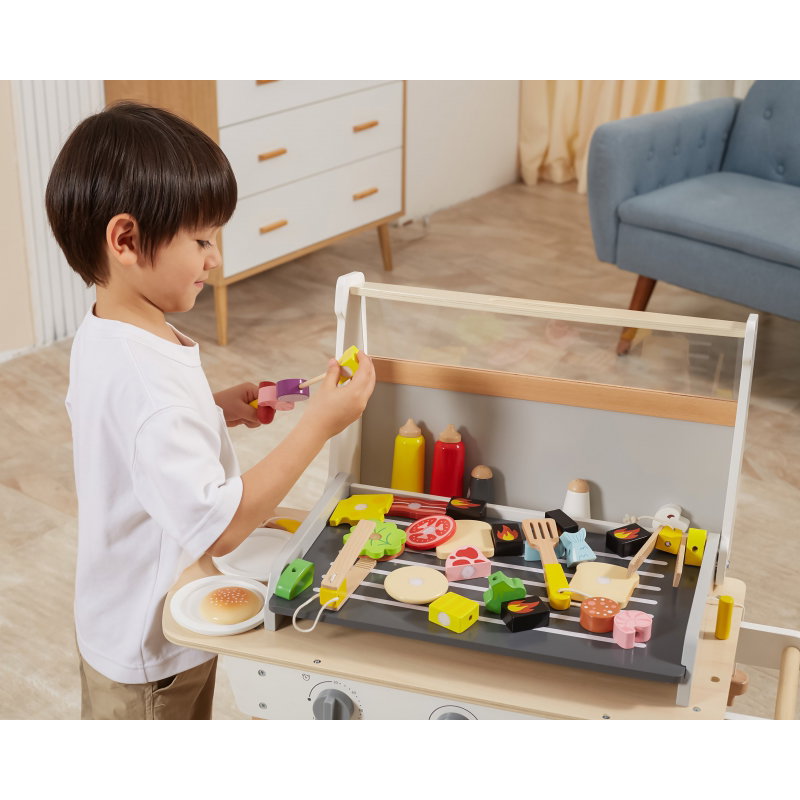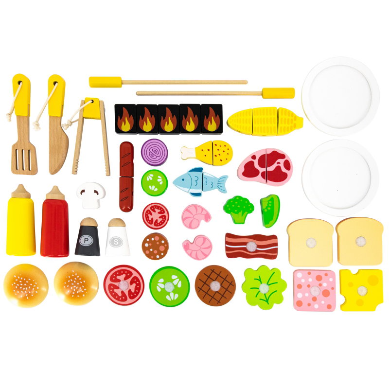 DREWNIANY GRILL DLA DZIECI Z MASA AKCESORIÓW